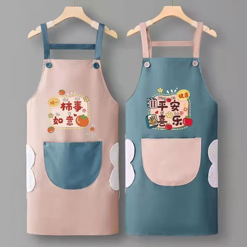 エプロンキッチン家庭用国潮風作業服結婚ジョー移転汚れ防止ウエスト防水防油ファッション韓国版注文可能