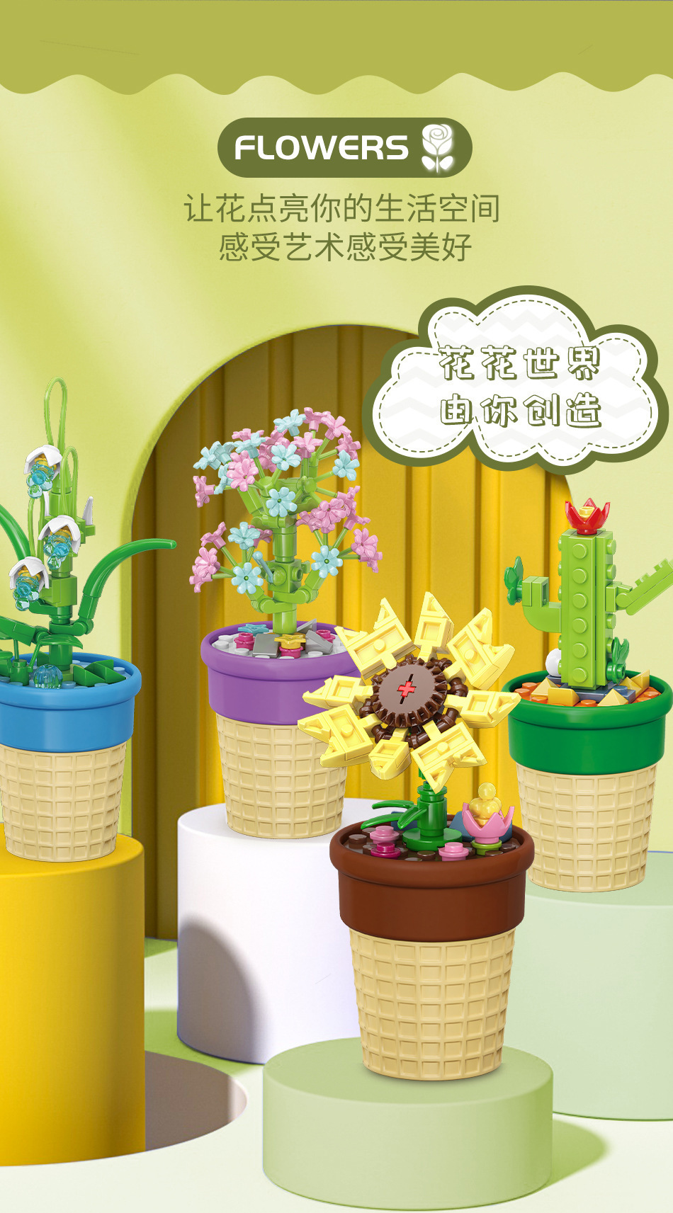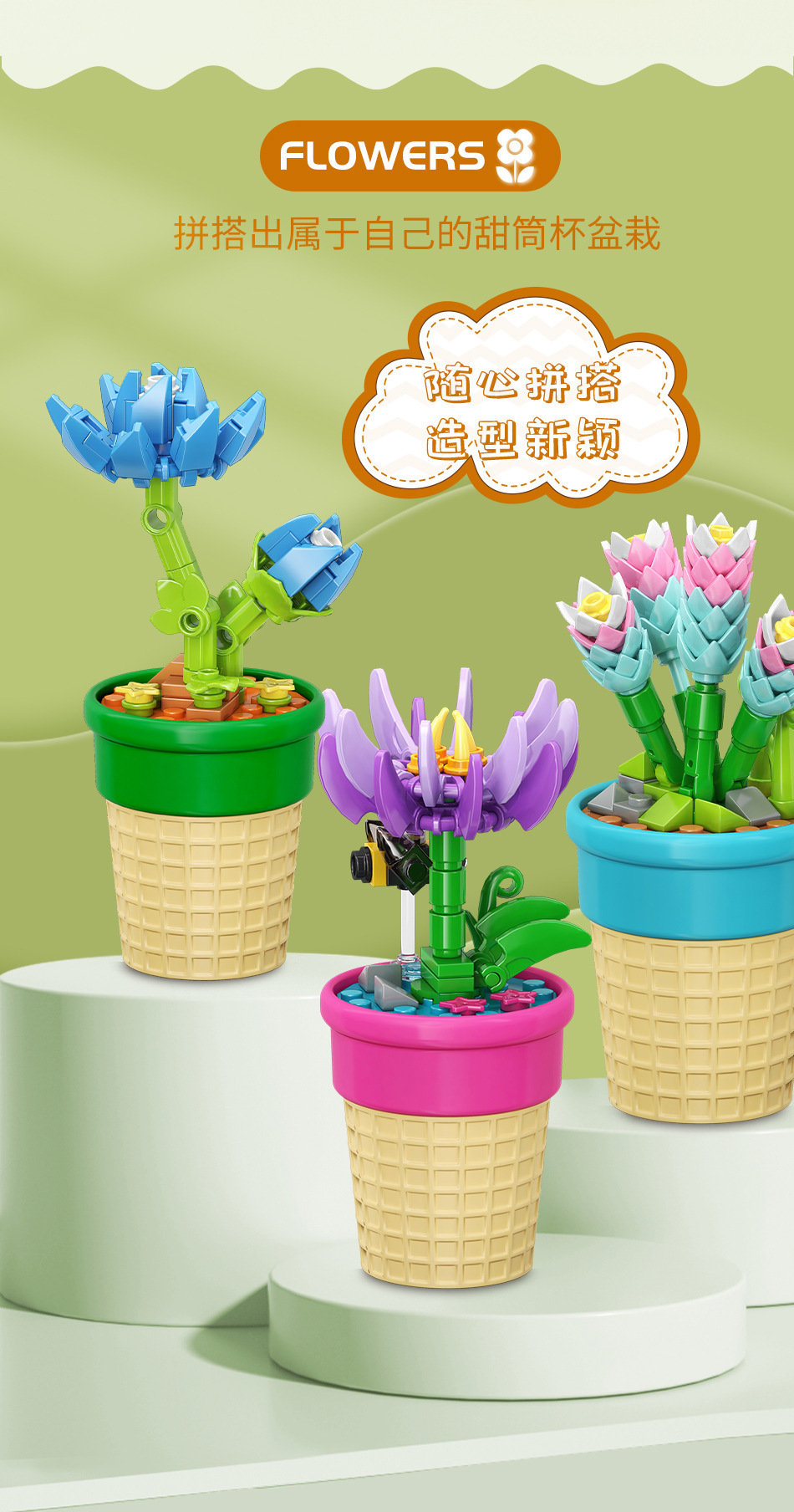 魔域87069互換レゴ小粒積み木永生花卉シリーズ卓上置物ミニ鉢植え甜筒1