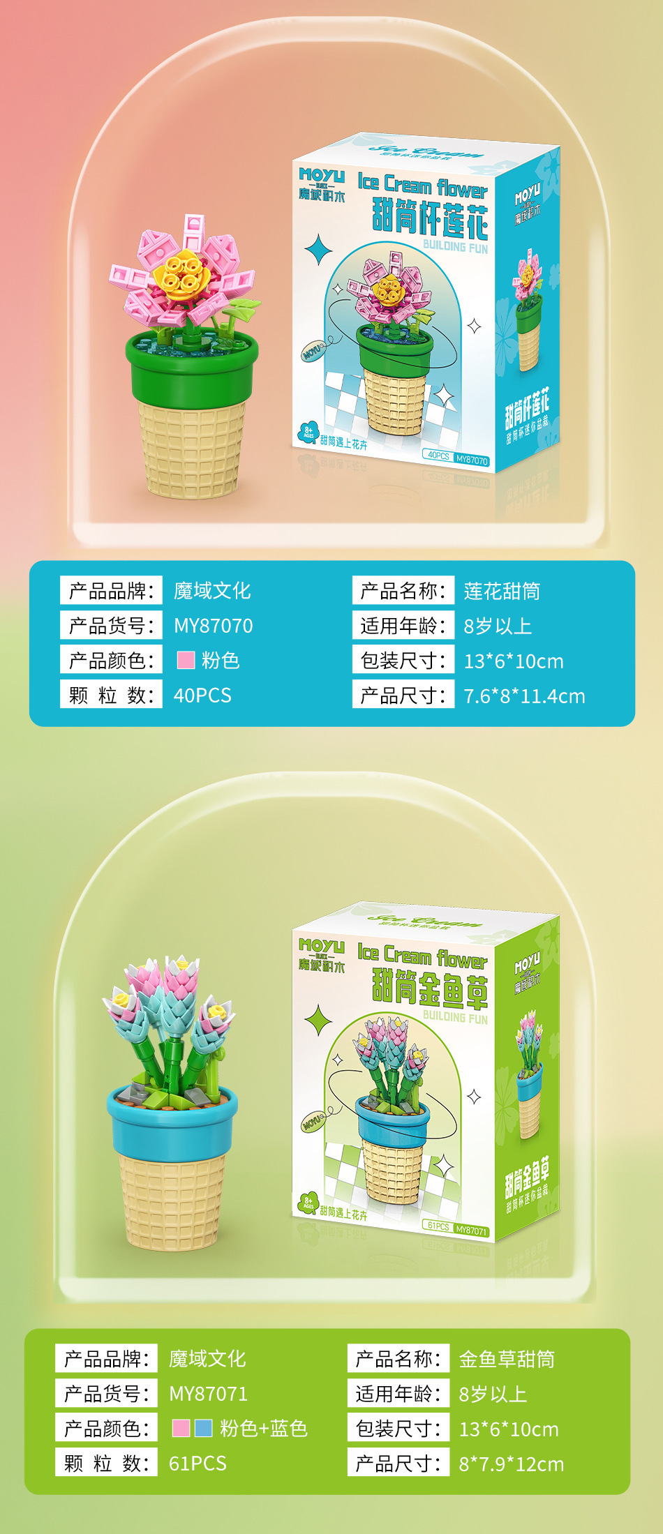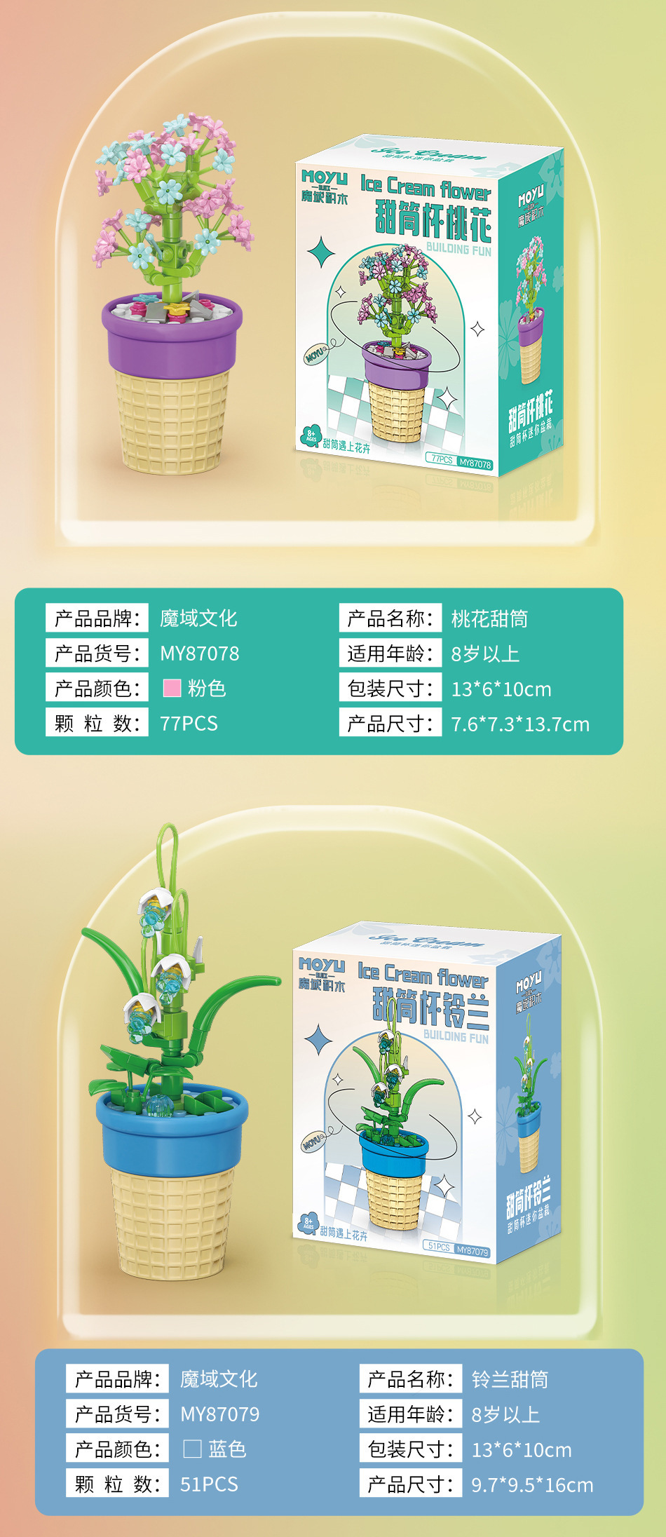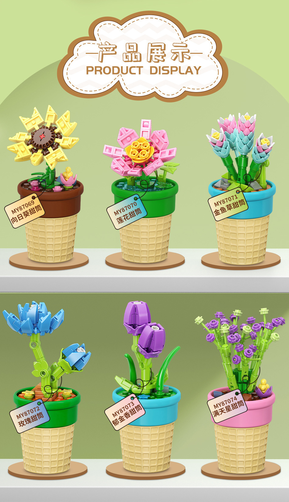 カラー My87069ひまわりコーン (44pcs),My 87070蓮の花のデザート (40pcs),My87071金魚草甜筒(61pcs),My87072ローズコーン (68pcs),My87073チューリップコーン (55pcs),My87074満天星甜筒(82pcs),My87075水仙甜筒(51pcs),My87076藍松甜筒(45pcs),My87077秋菊甜筒(64pcs),My87078桃花甜筒(77pcs),My87079すずらん甜筒(51pcs),My87080サボテン甜筒(41pcs)