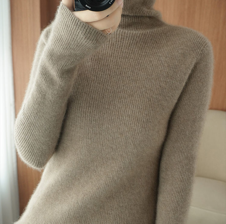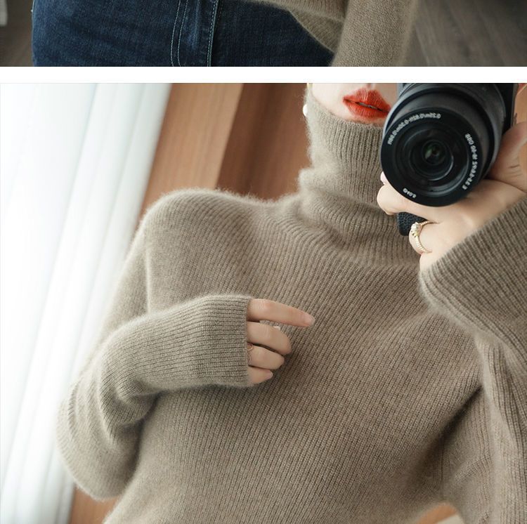 山の襟の百合のセーターの女性のニットウェアの秋冬の新型の洋気のゆったりしている高襟の長袖の中で底のシャツの上着を掛けます。