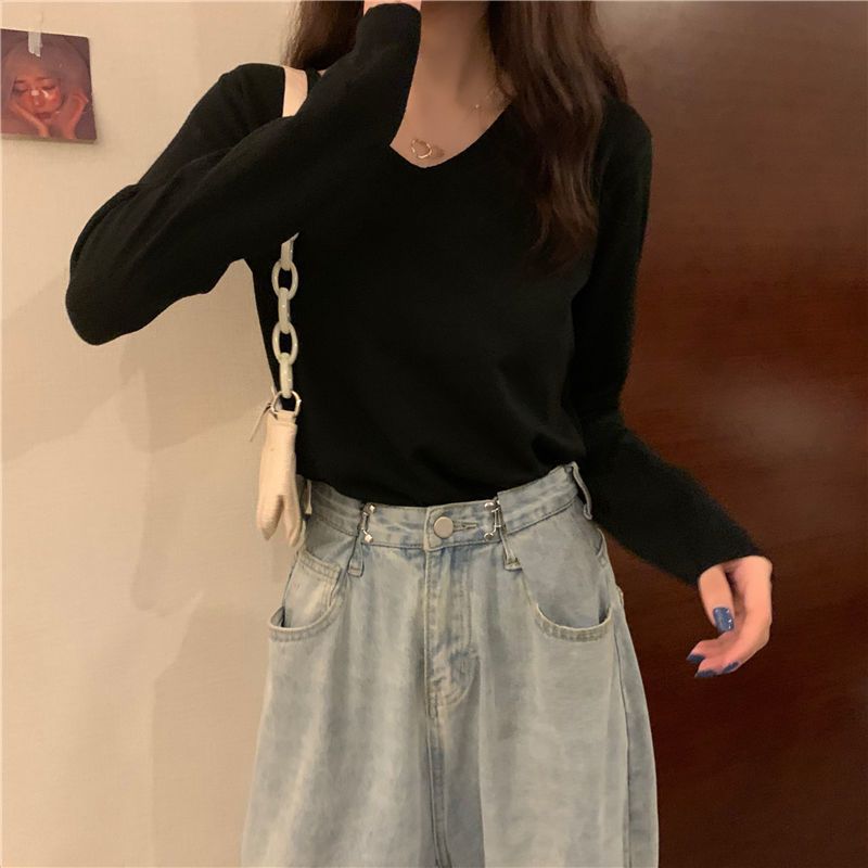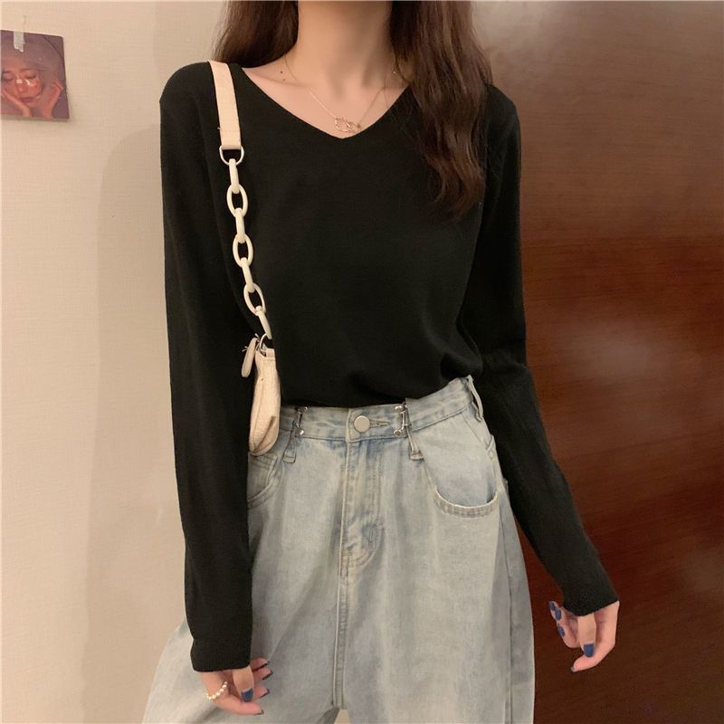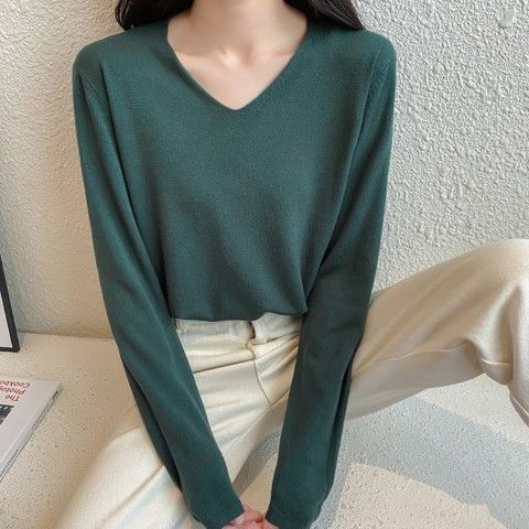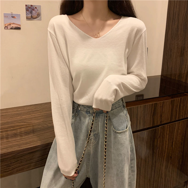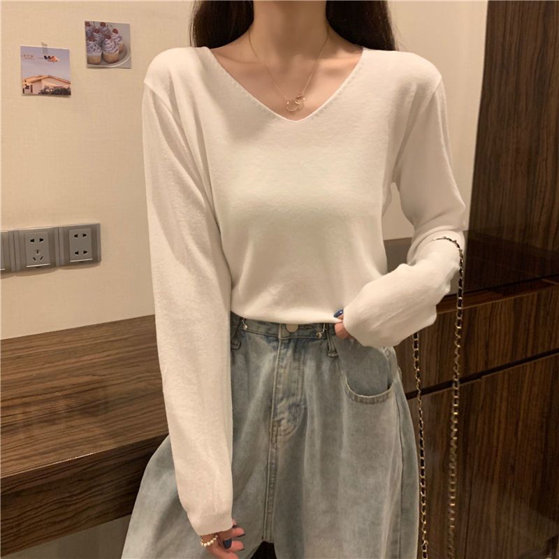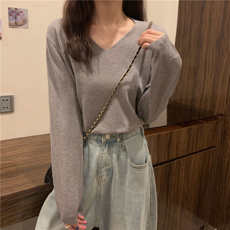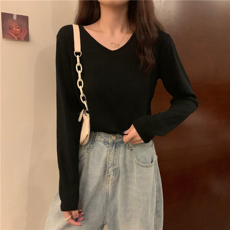 秋冬韓国版2023新型スリムvネックの基礎モデルの純色の中に長袖のニットの上着の婦人服を掛けます。
