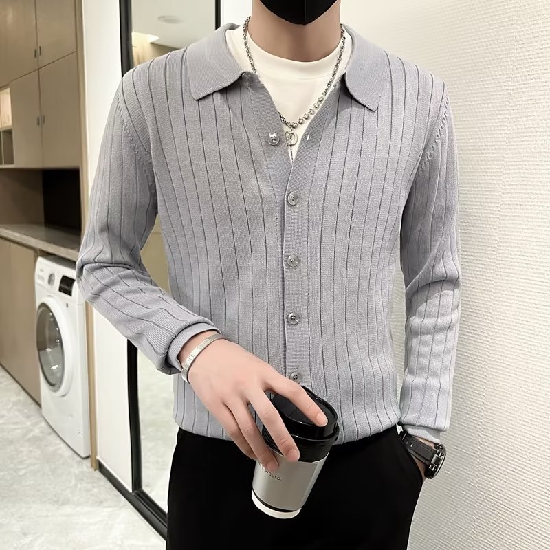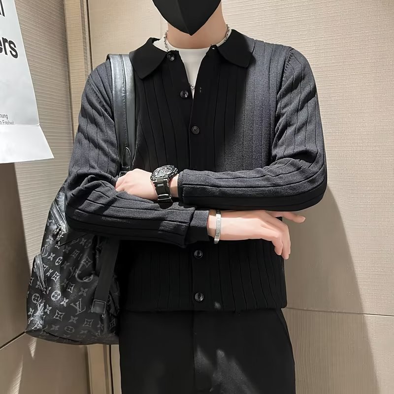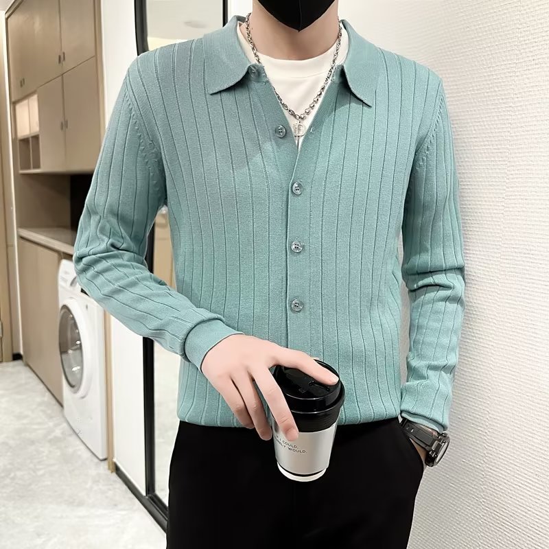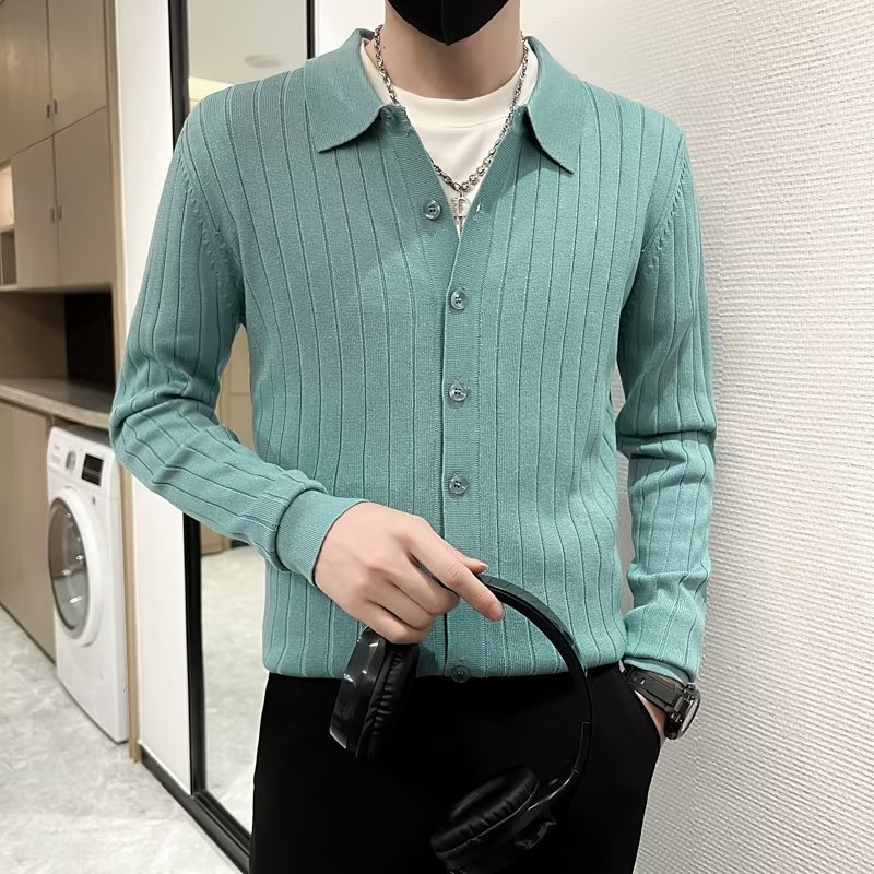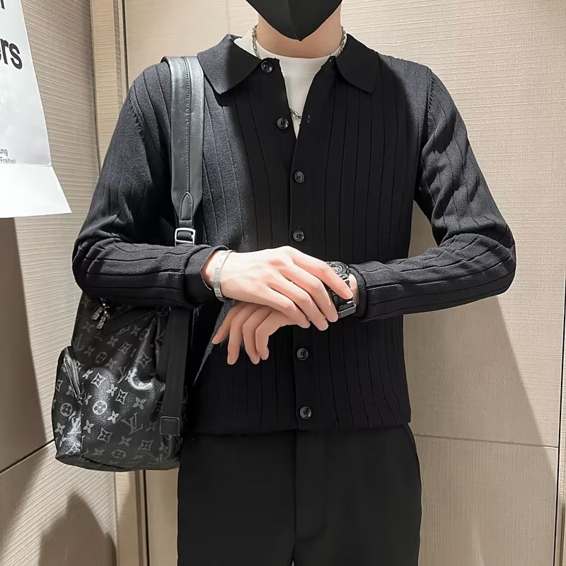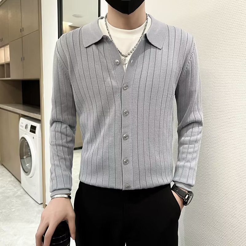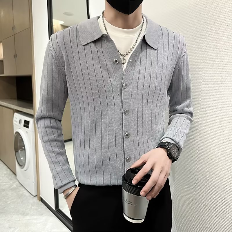 2023春の新商品に合わせてカジュアルな質感のニットの男性長袖の韓国式のシンプルな純色のゆったりしたカーディガンのセーター