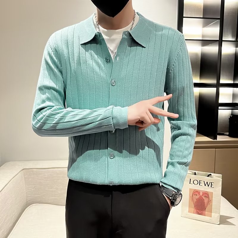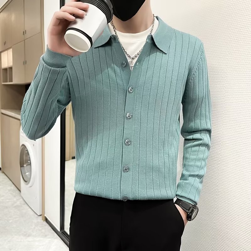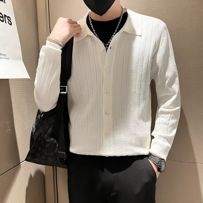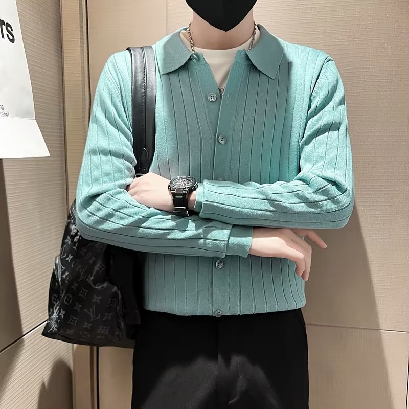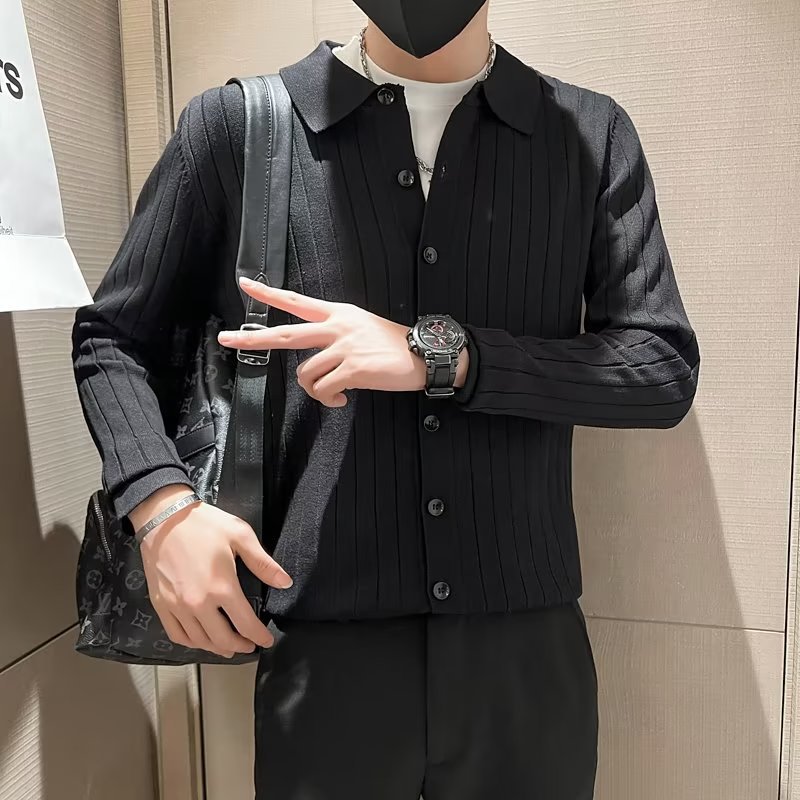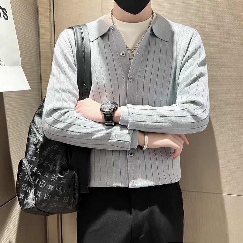 2023春の新商品に合わせてカジュアルな質感のニットの男性長袖の韓国式のシンプルな純色のゆったりしたカーディガンのセーター