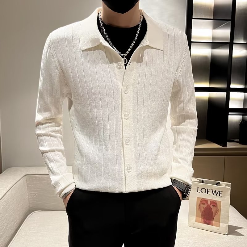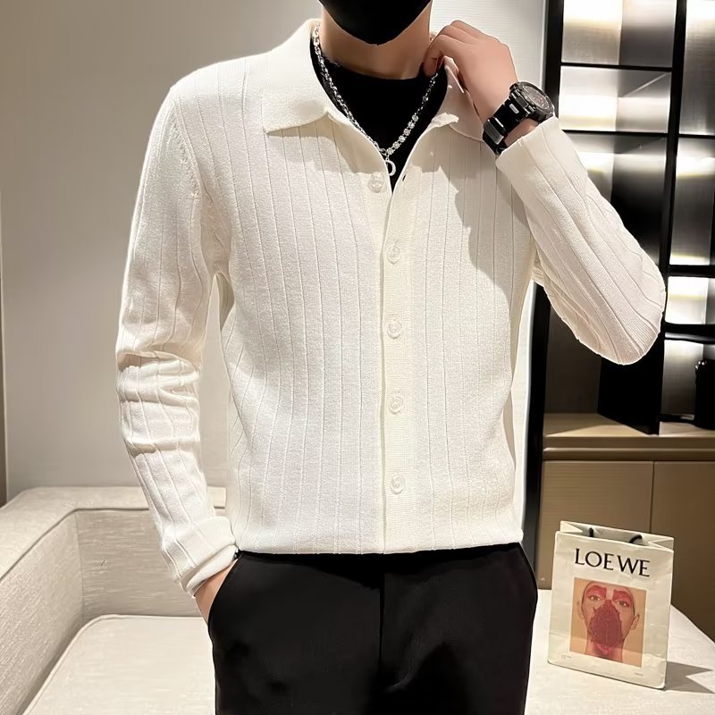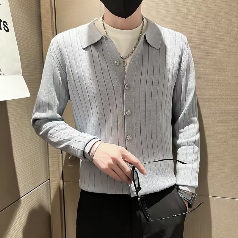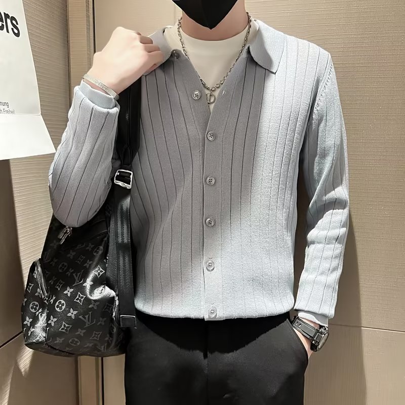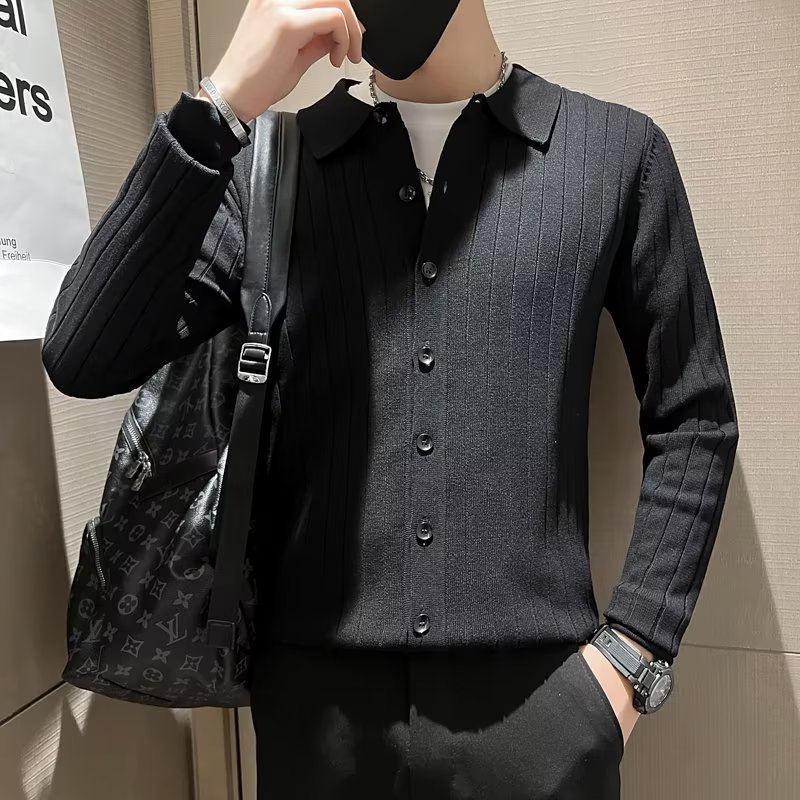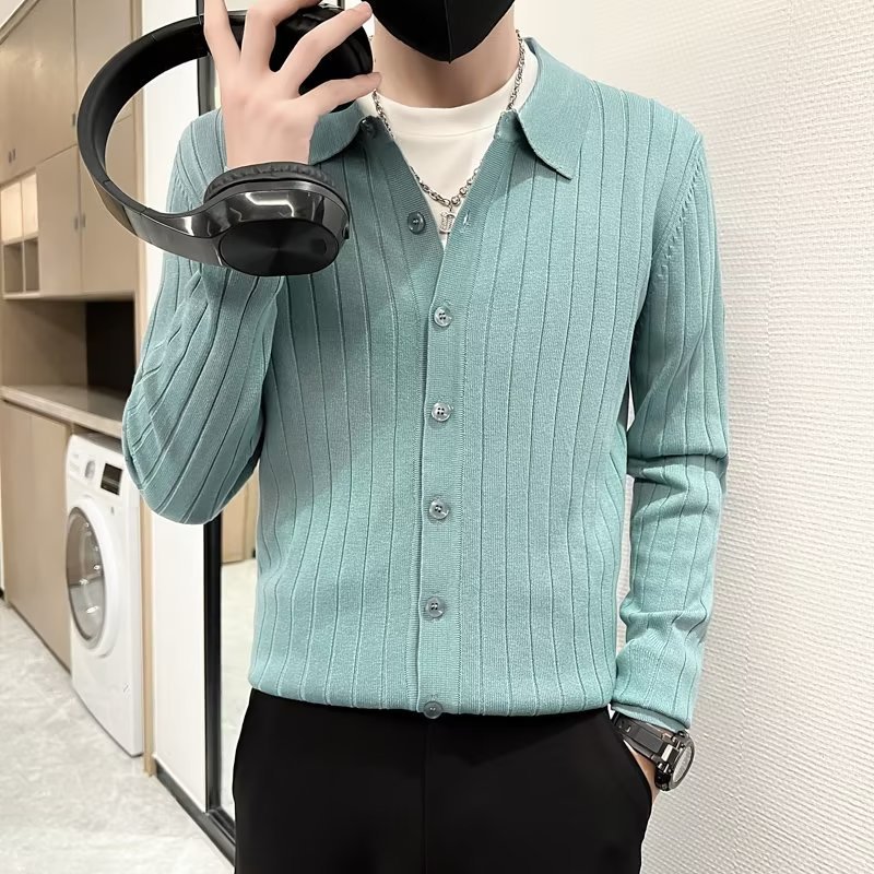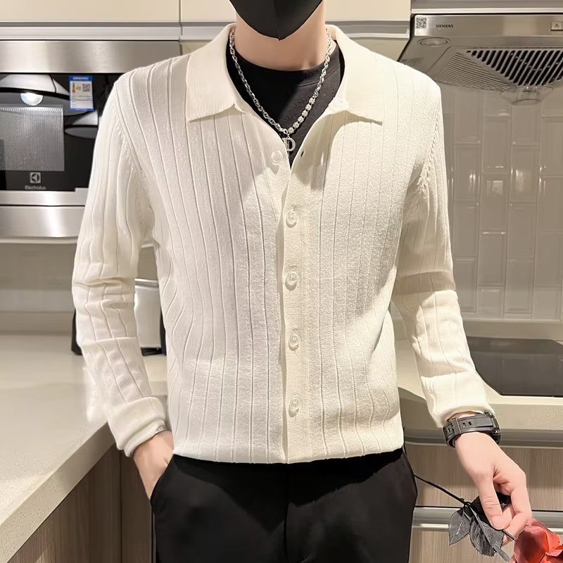 2023春の新商品に合わせてカジュアルな質感のニットの男性長袖の韓国式のシンプルな純色のゆったりしたカーディガンのセーター
