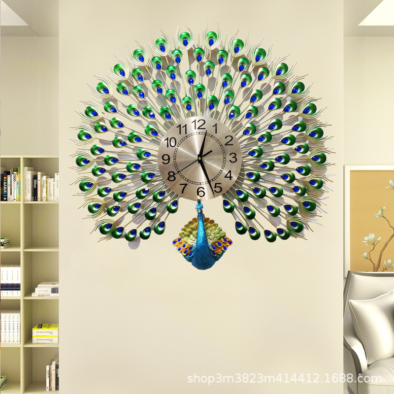 アマゾンの人気人気商品時計シンプルな孔雀クリエイティブリビングルームの掛け時計家庭用装飾時計の壁