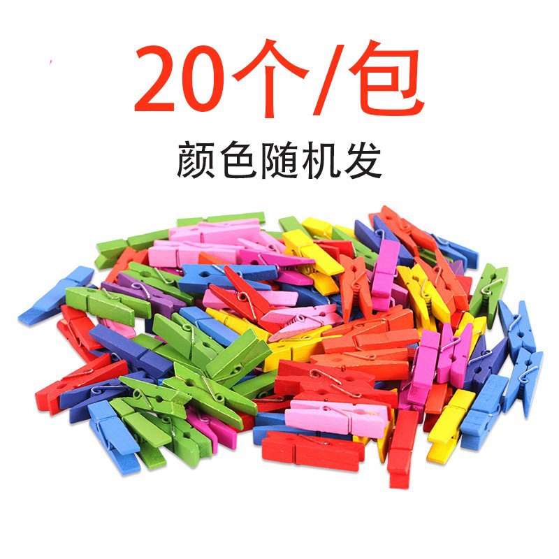 彩色木夹子20个一包手工木夹幼儿园教室照片夹挂墙装饰便签麻绳夹