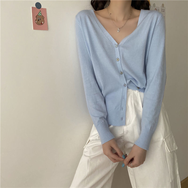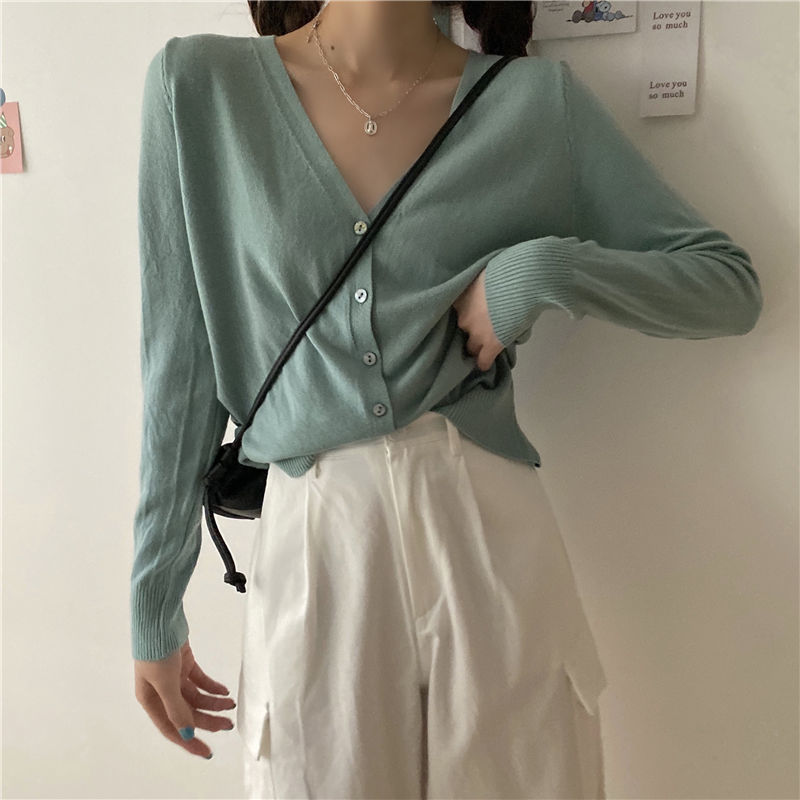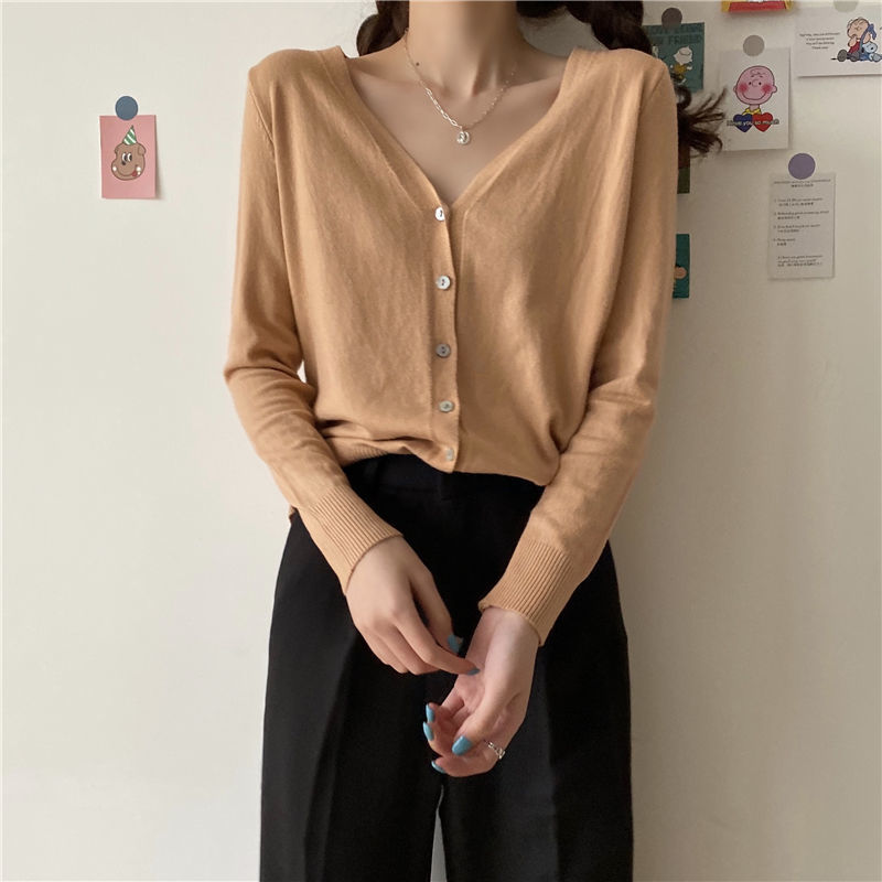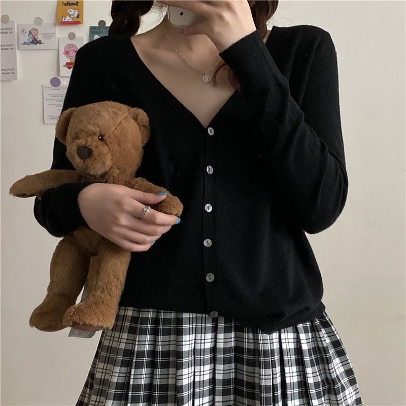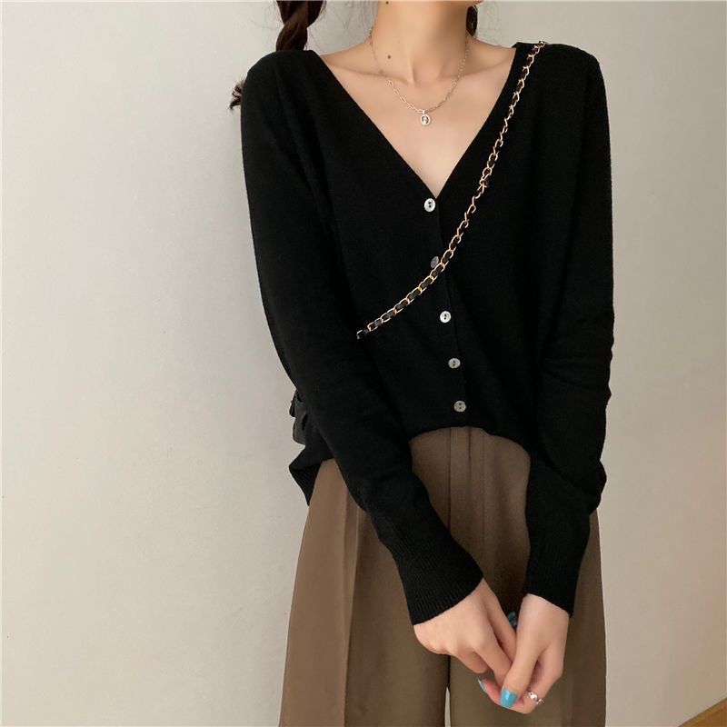 小衆の独特な上着の女性の早秋2023新型vネックのニットの冬の短い洋風のセーターのカーディガンのコート