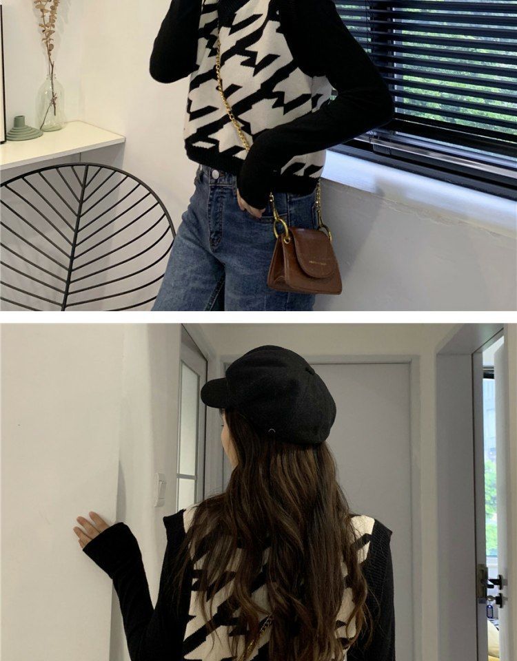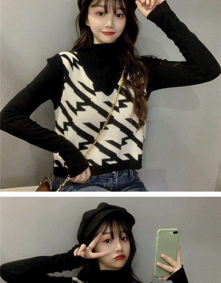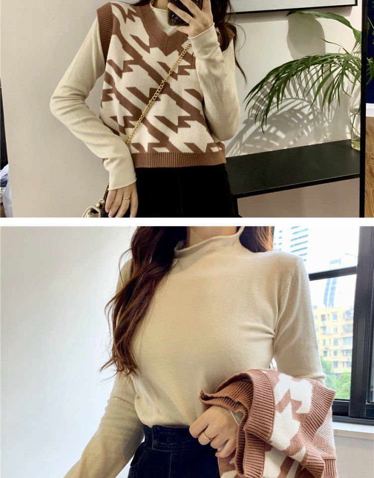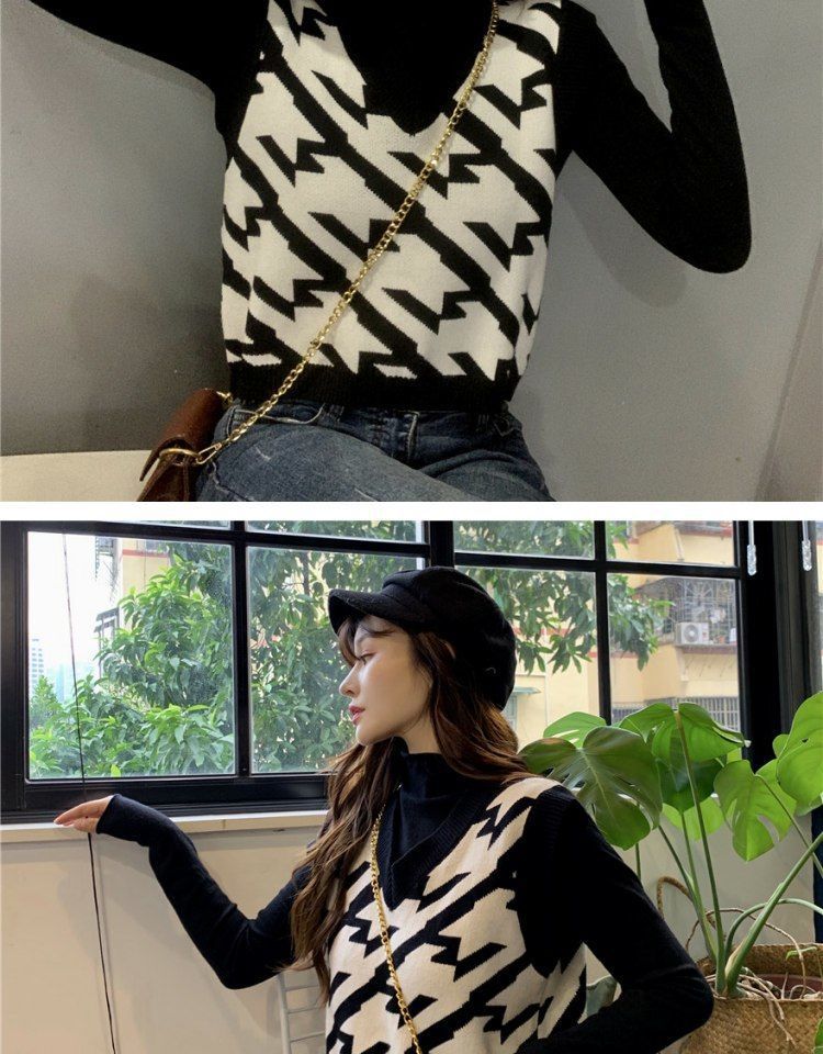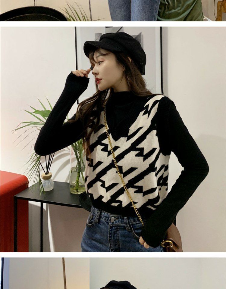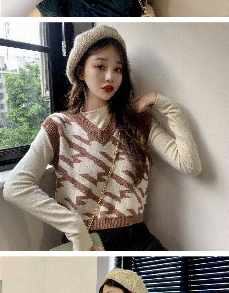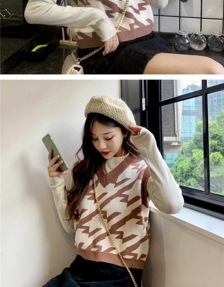 学院風ニット馬甲女は早秋の小柄にアメリカのレトロなベストを重ねて着ています。