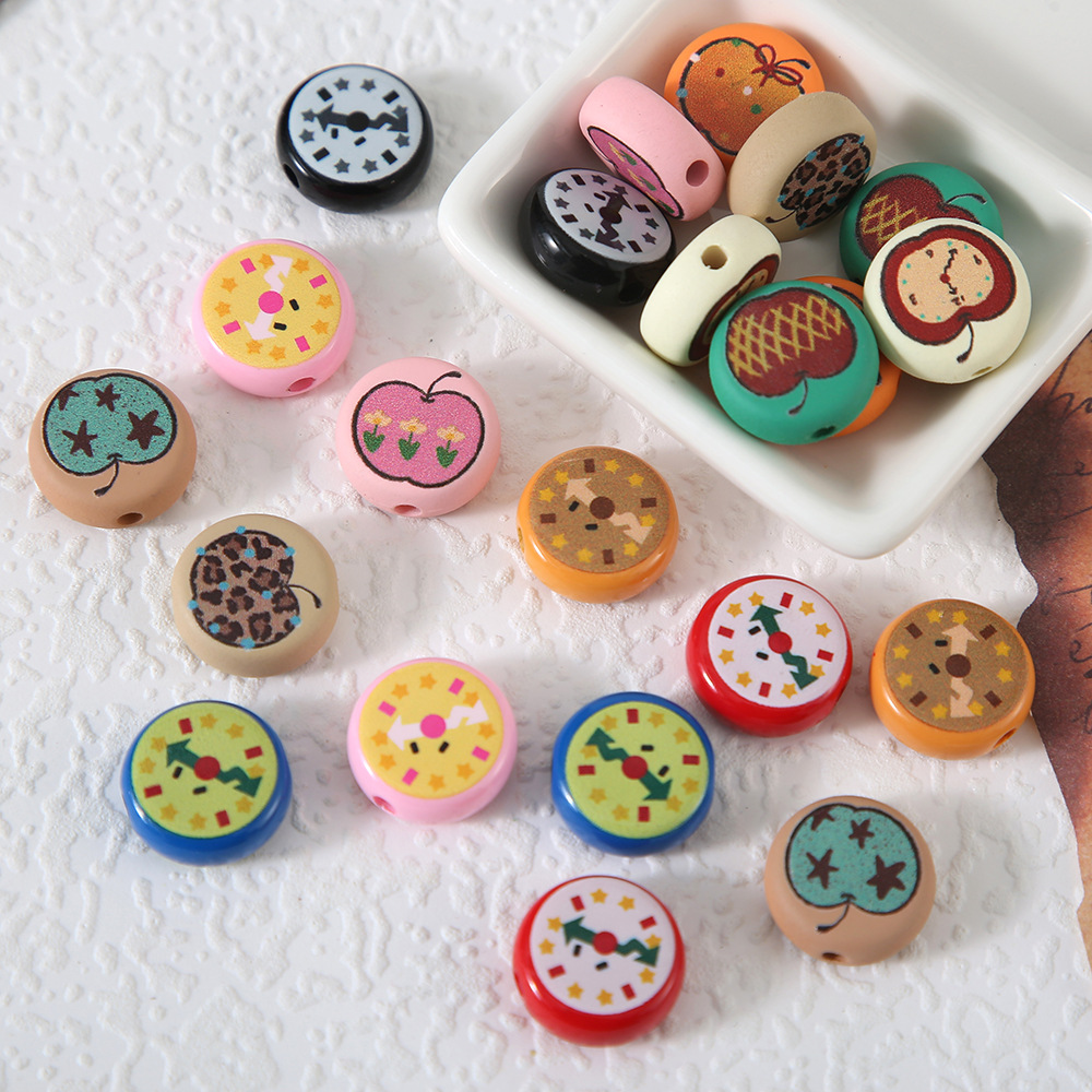 亚克力彩色卡通闹钟圆片散珠子 手工diy材料手链项链串珠饰品配件