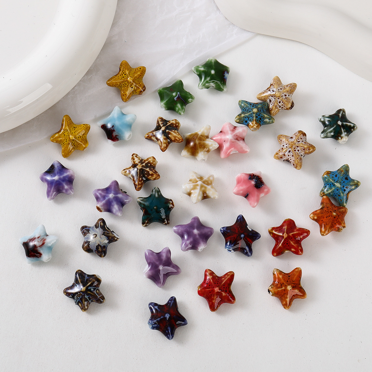 高温窑变海星陶瓷珠散珠串珠珠子 diy手工手机链手链饰品配件材料