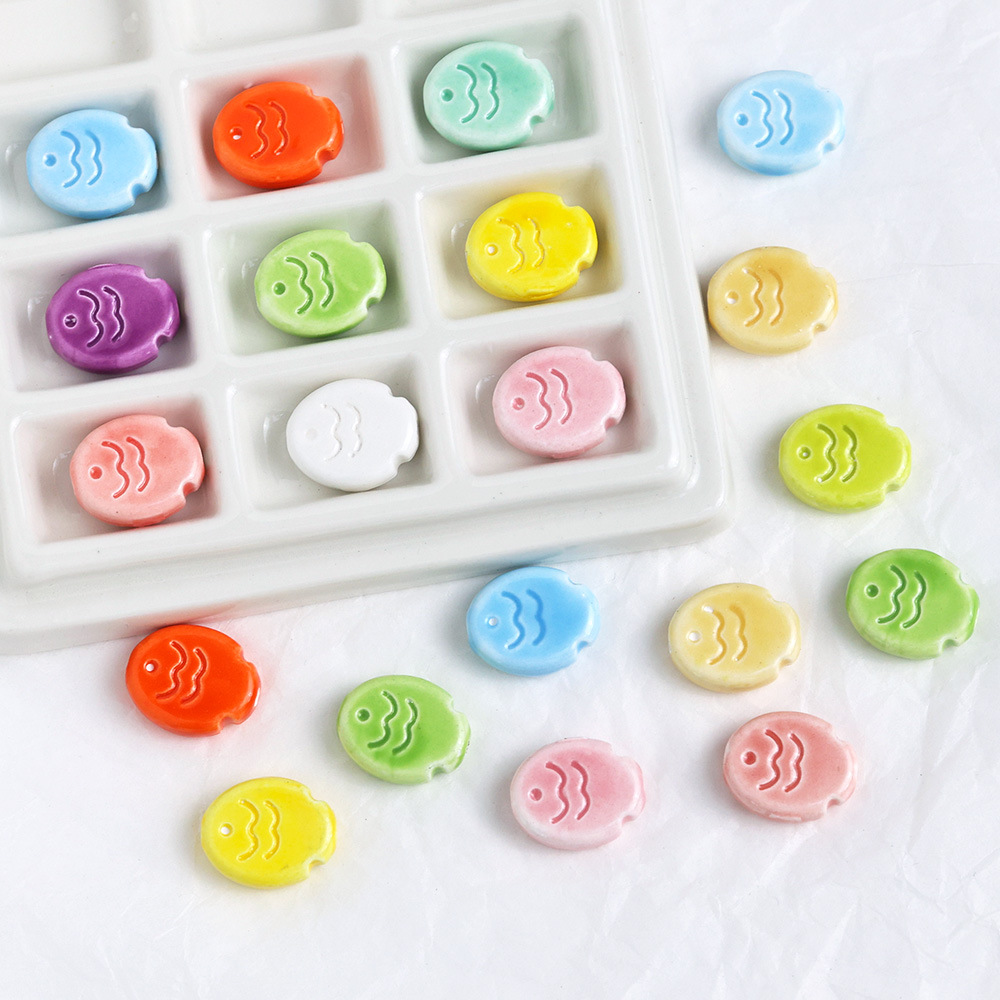 可爱卡通双面陶瓷小鱼珠散珠子 海洋系鱼饼串珠diy手机链项链配件