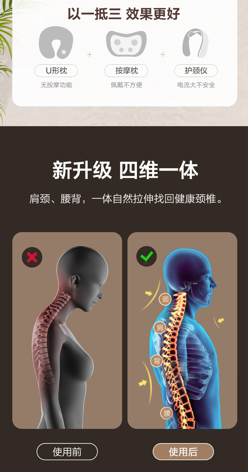 マッサージ枕電動腰マッサージクッションオフィス頚椎腰椎ベッドサイド雲易クッション旅行頚椎牽引