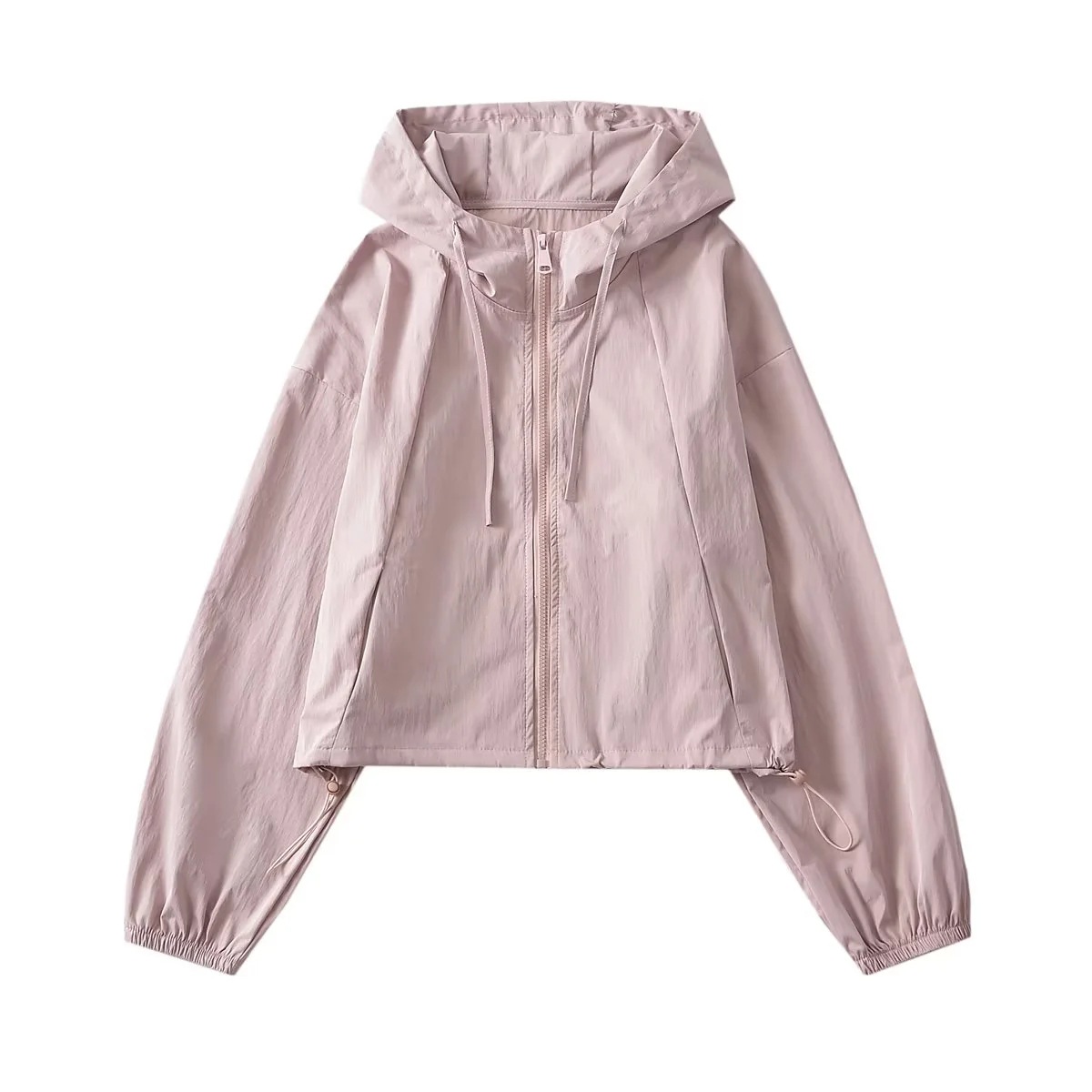 辣妹短款休闲拉链长袖夹克外套女秋季宽松复古抽绳连帽开衫上衣