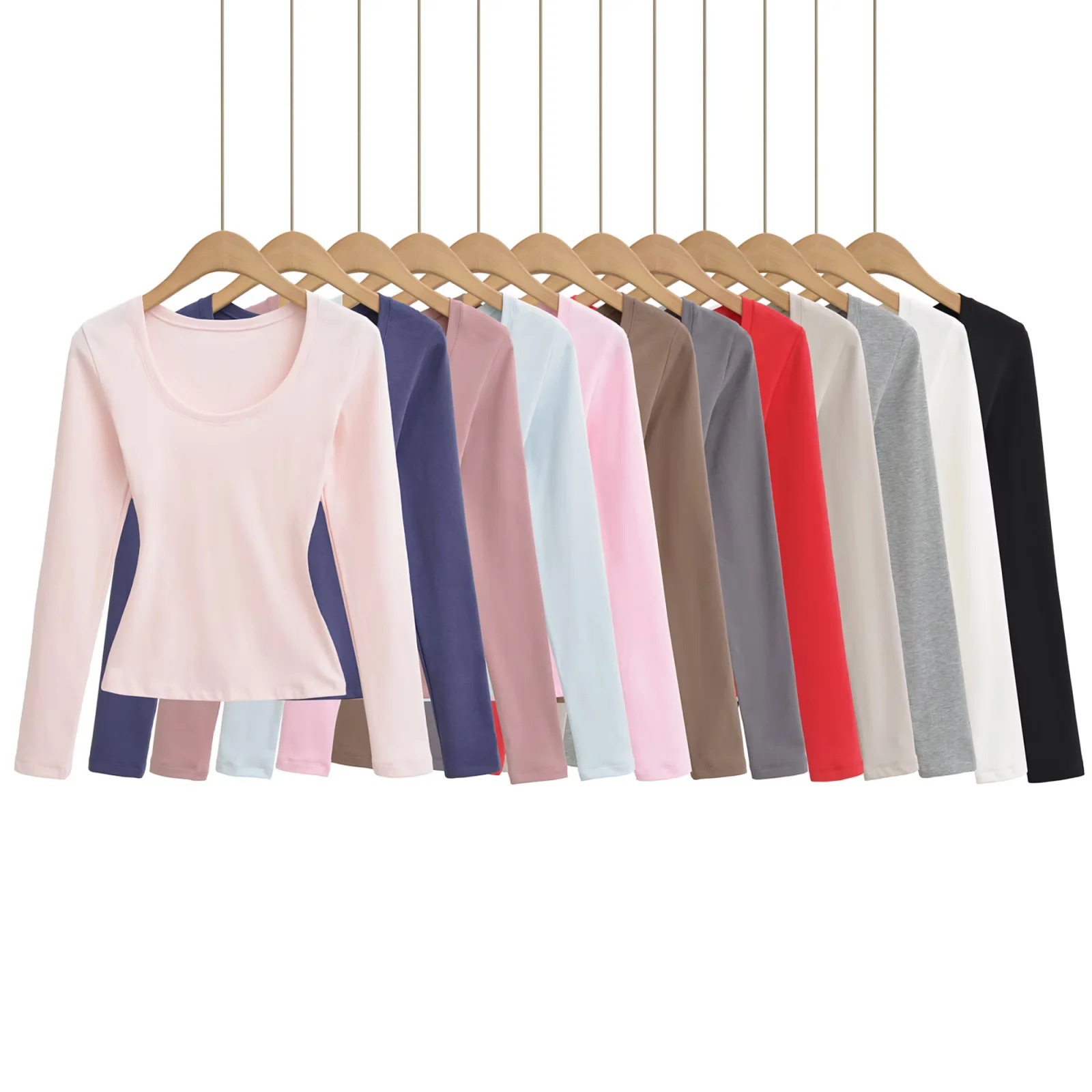 美式辣妹基础百搭长袖T恤女春秋季沙漏腰U领修身内搭显瘦打底上衣
