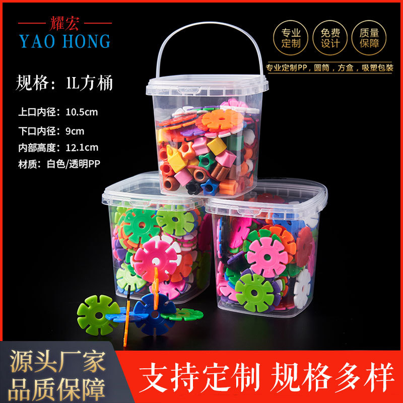1l角型透明プラスチック製バケツ防湿蓋付き積み木数珠玩具収納バケツ密封氷粉包装トントンバレル