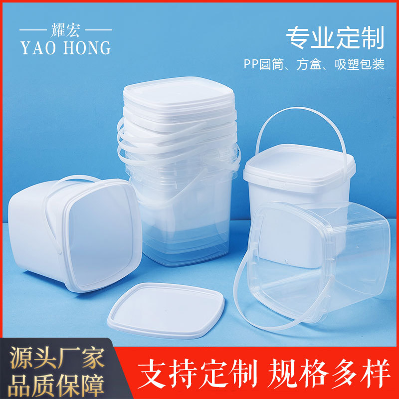 卸売り2リットル角形桶透明プラスチック桶包装桶蓋付き桶小桶バケツ化学桶pp白色