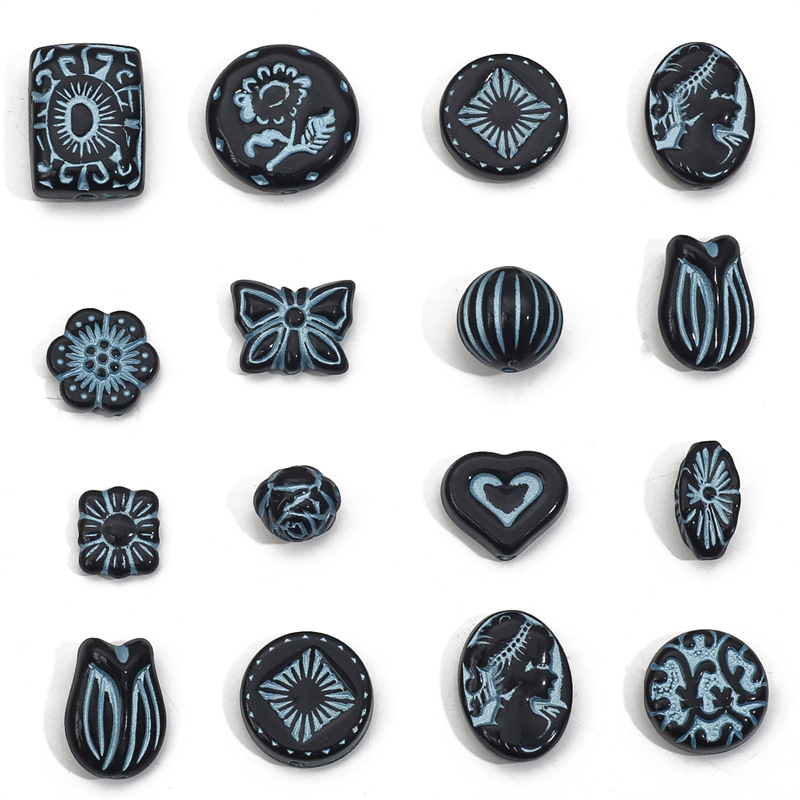 アクリルバロックレトロ青紋楕円オリーブ回紋扁珠カボチャ隔珠diyアクセサリーイヤリング部品
