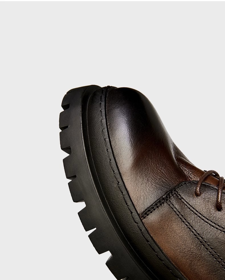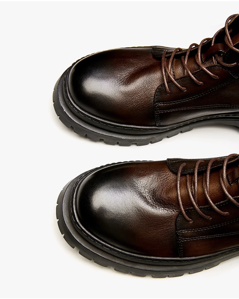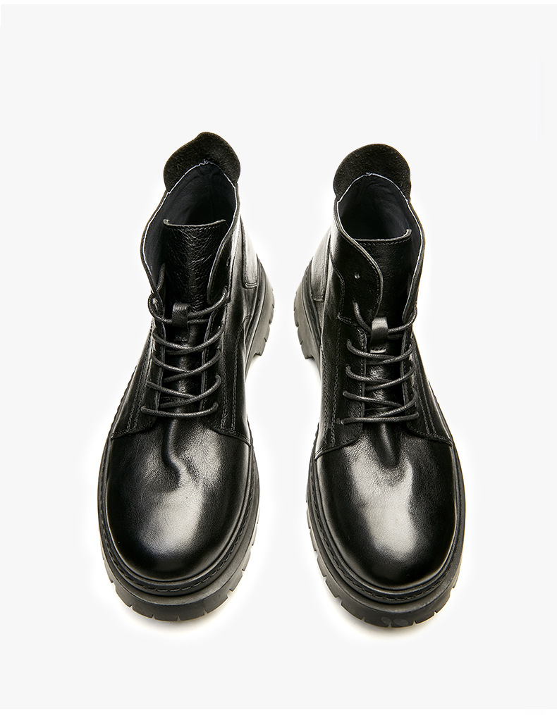 铂巍男士休闲真皮马丁靴软底潮流圆头皮鞋中帮靴子系带工装靴男靴