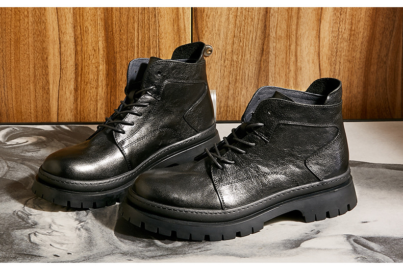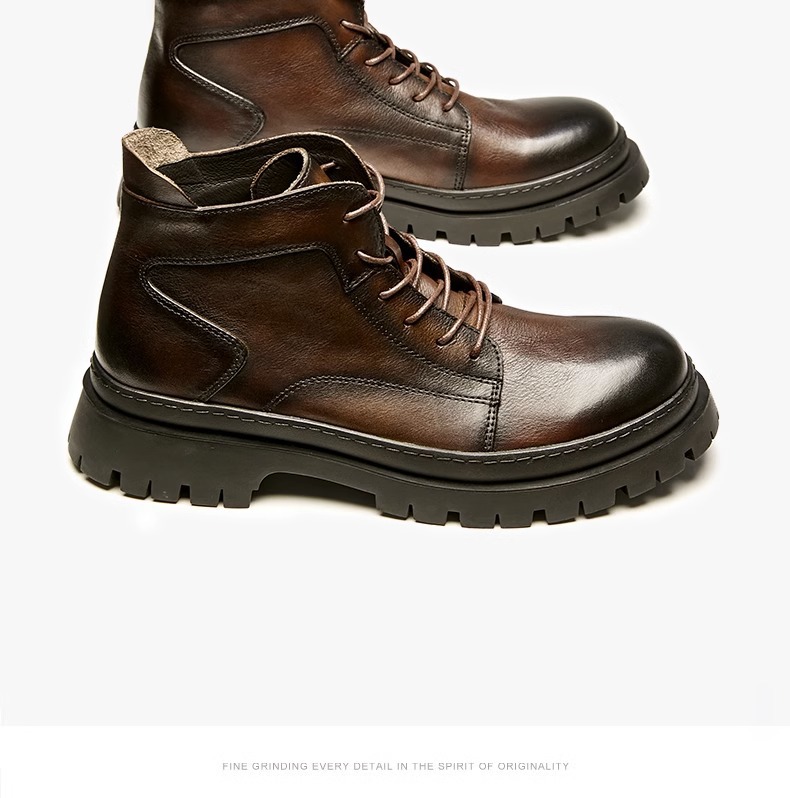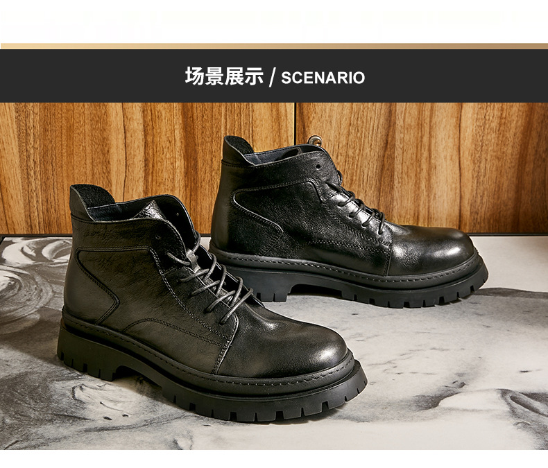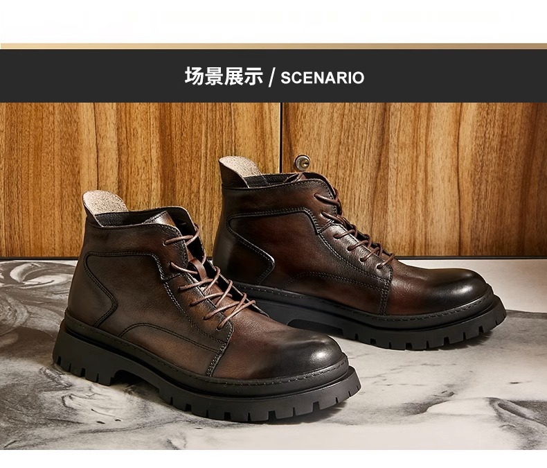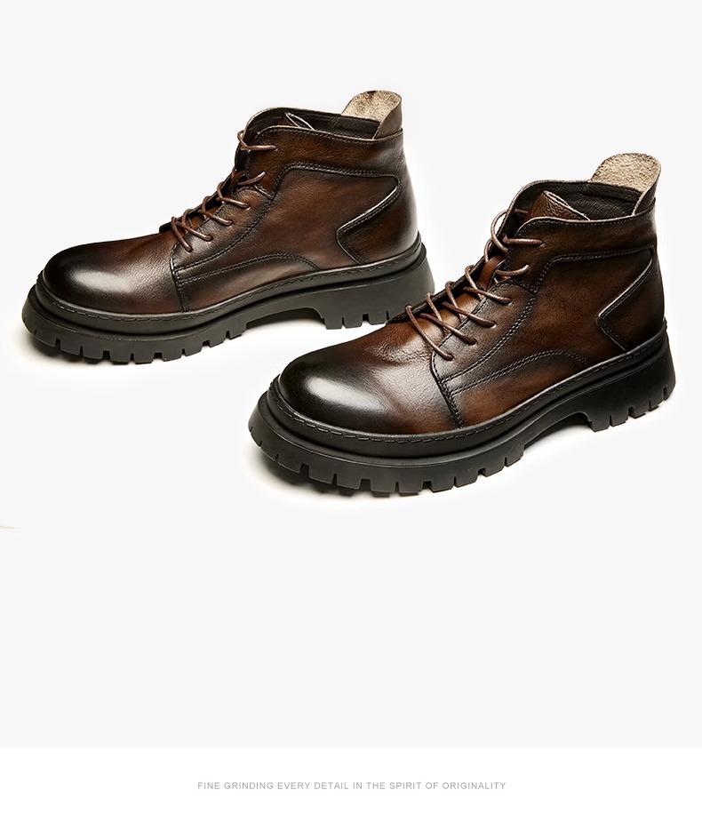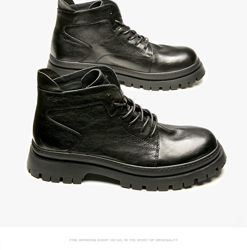 中筒ブーツ男性戦狼靴機能風マーティンブーツ男高組英倫工装靴ハーレー機関車牛革ブーツ