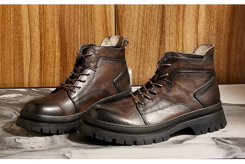 メンズブーツ2022秋冬本革ハイトップファスナー付マーティンブーツ