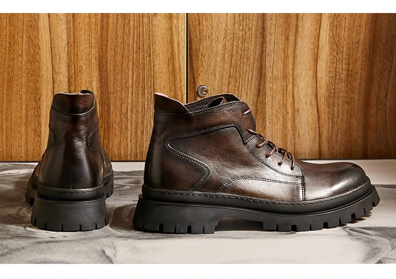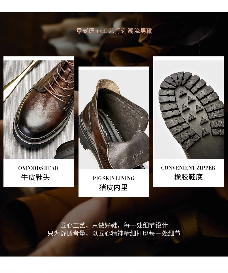 冬季复古马丁靴男士英伦风高帮真皮靴子头层牛皮短靴低帮切尔西靴