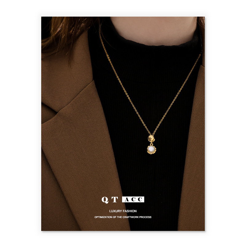 真鍮メッキ18k真金欧米極簡冷淡ins風ファッションデザイン感天然石ビーズネックレスアクセサリー