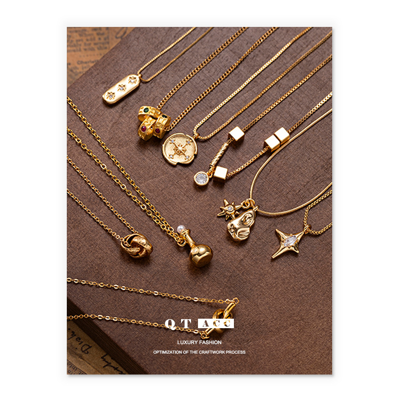 欧米風レトロクロスボーダーファッション真鍮金メッキ高級感タイガーアイ瑪瑙ジルコンネックレスシンプルで万能なアクセサリー