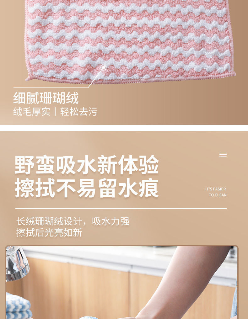 台所のサンゴの絨毯の食器洗い布の吸水百潔布の陽イオンの雑巾の怠け者の厚い日用の食器洗い布の卸売り