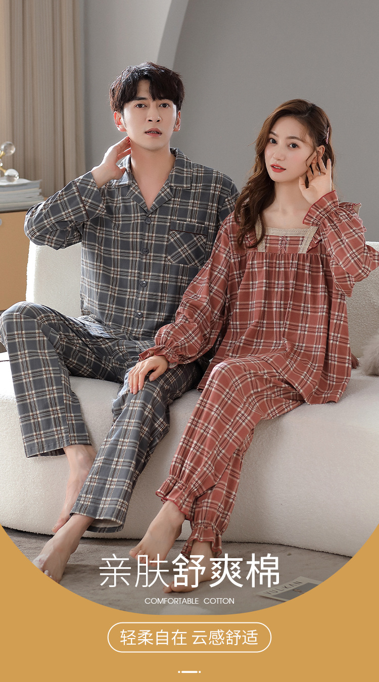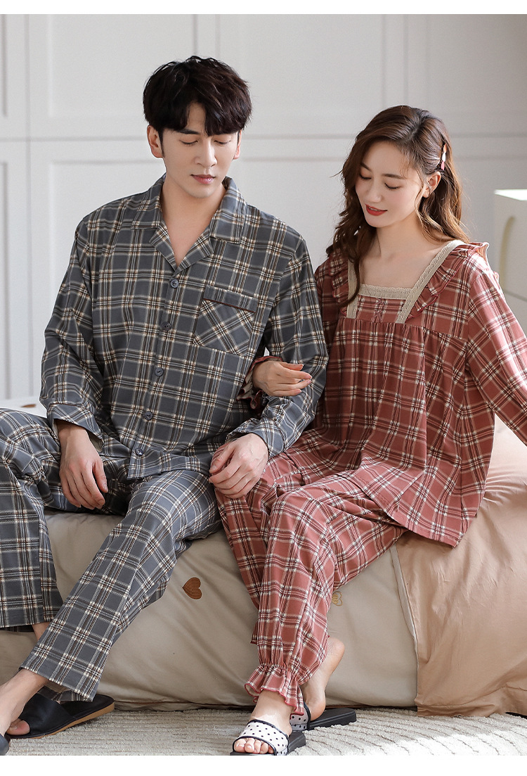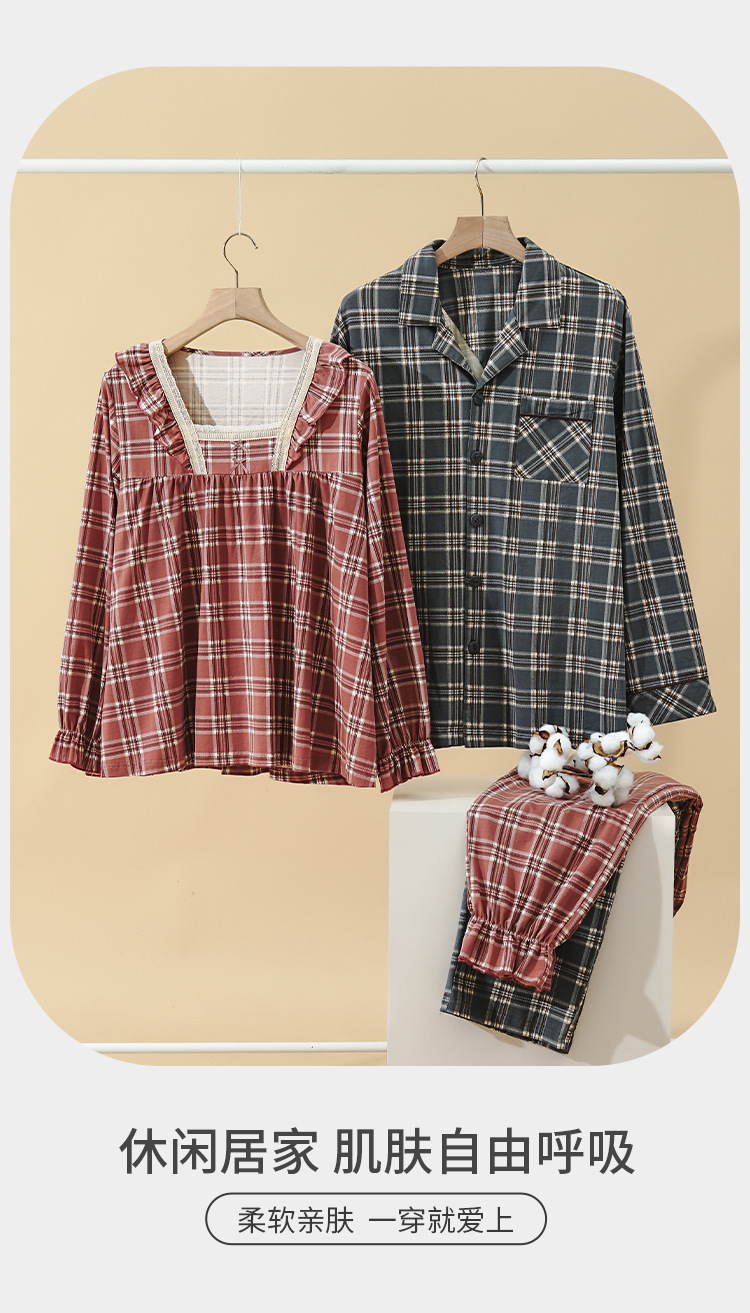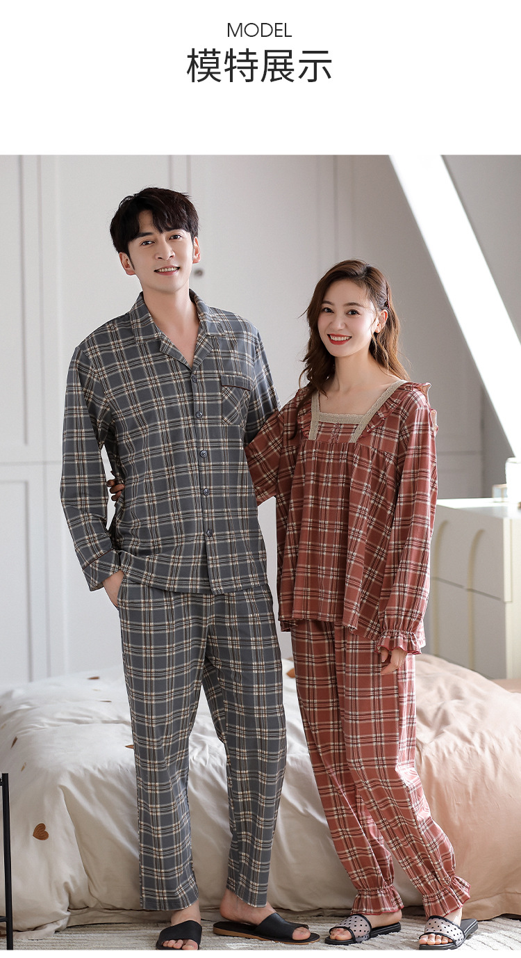 カップルのパジャマの女性の棚のさわやかな綿の秋冬の新型の格子の大きいサイズは純綿の家庭服の男性のスーツを着ることができます。