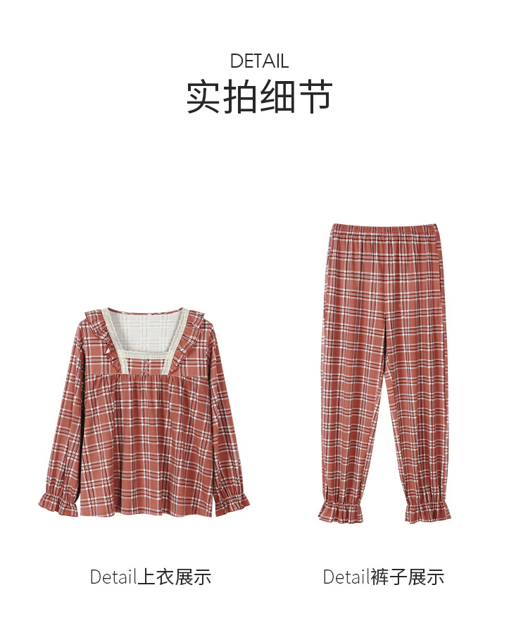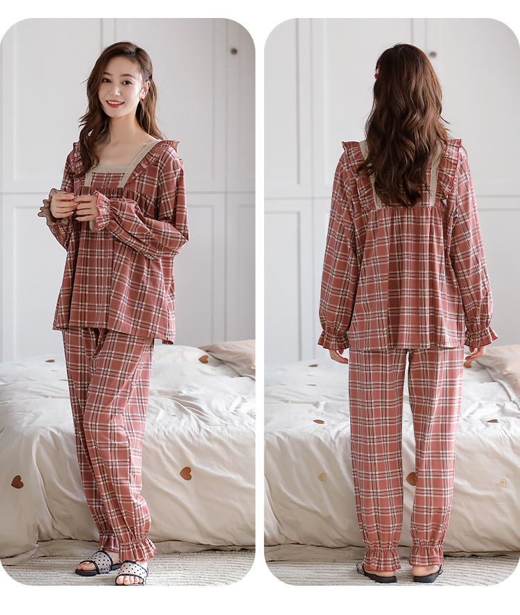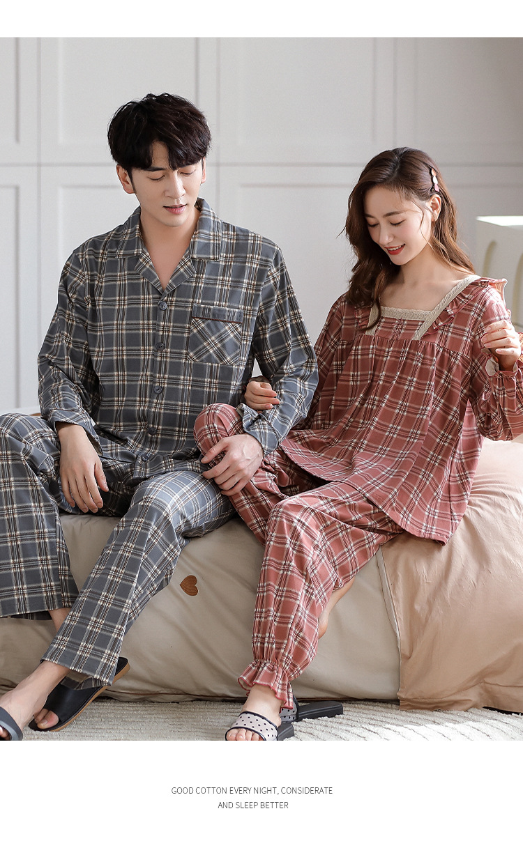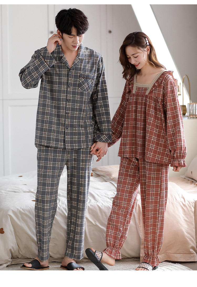 カップルのパジャマの女性の棚のさわやかな綿の秋冬の新型の格子の大きいサイズは純綿の家庭服の男性のスーツを着ることができます。