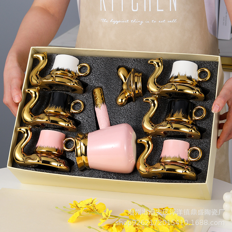 金辺コーヒーカップ陶磁器家庭用昼寝コーヒーカップメッキ白鳥コーヒーカップ皿軽贅沢家庭用コーヒーカップ