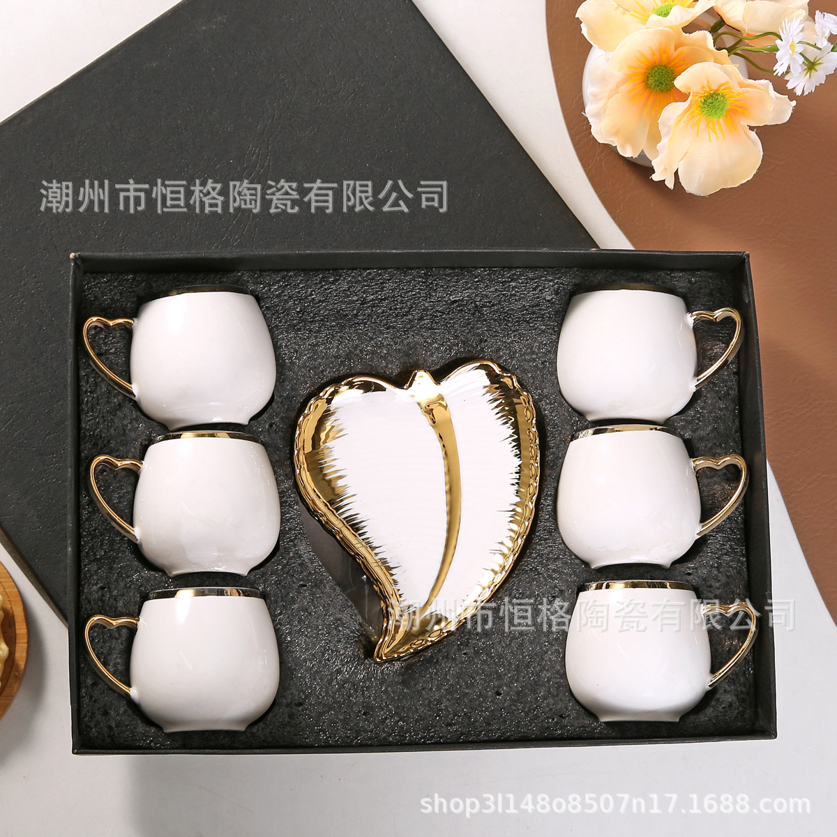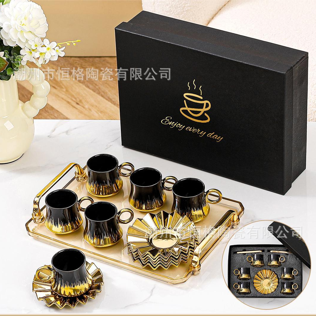 対外貿易北欧中東アラブ電気金メッキ陶磁器コーヒーカップ皿セットトレイ付きギフトボックス付きクロスボーダー電気商