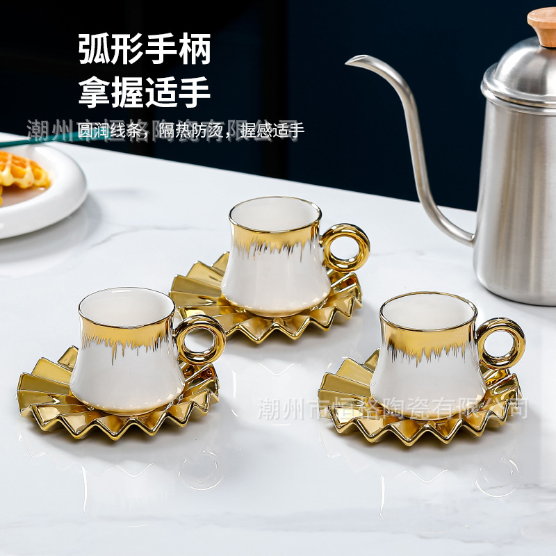 国境を越えたコーヒーカップ皿セットアラブ中東陶磁器カップヨーロッパ式メッキカップ皿セット6杯6皿卸売り