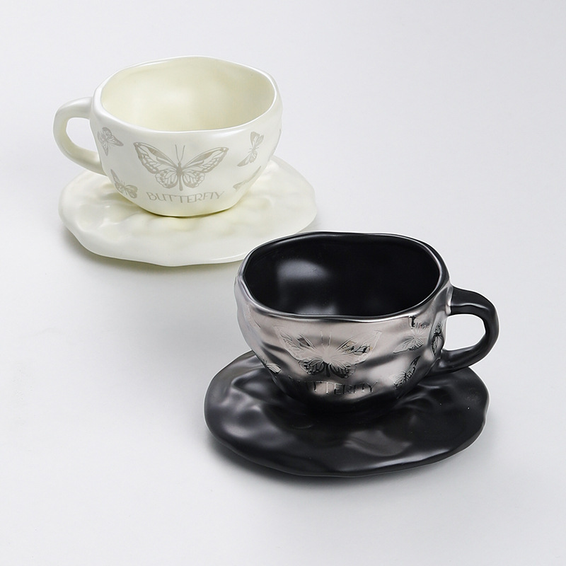 クリエイティブセラミックメッキコーヒーカップ皿手握りコーヒーカップ大容量コーヒーカップ朝食ミルクカップsin風カップ