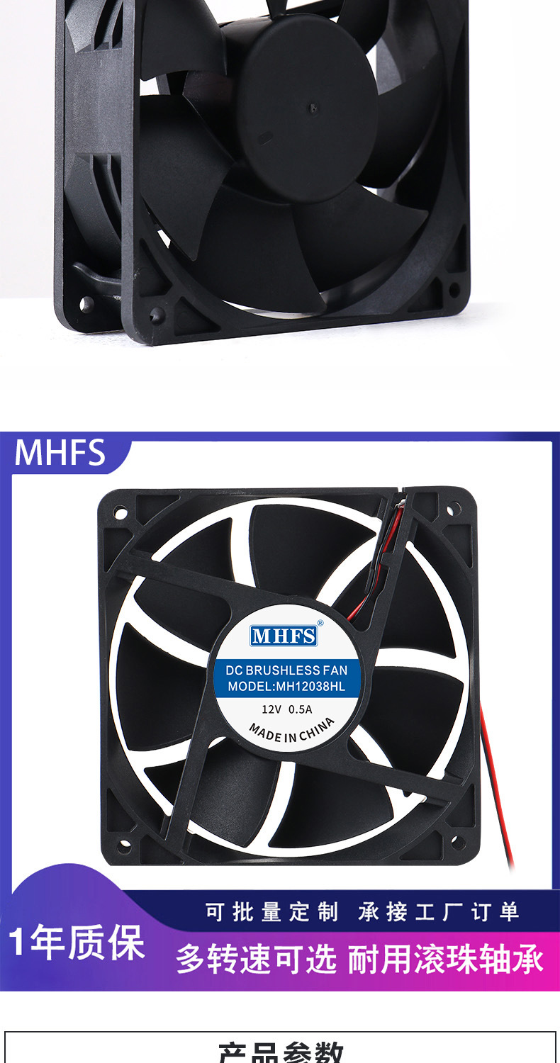 12025直流冷却ファン、大風量、高回転数、12cm、ケース、キャビネット、産業用静音ファン、卸売