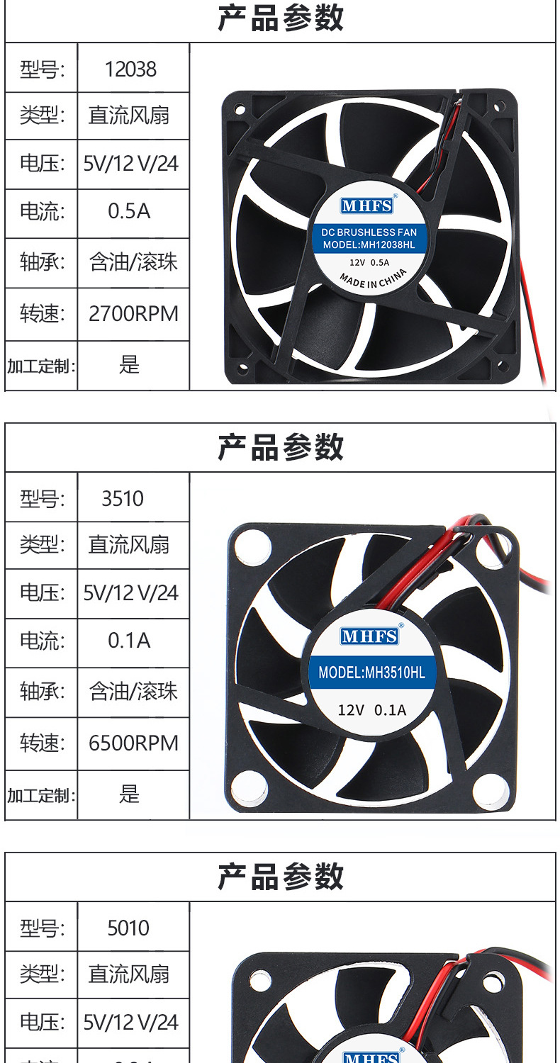 12025直流散热风扇5v含油 USB接头充电器路由器专用工业风扇批发