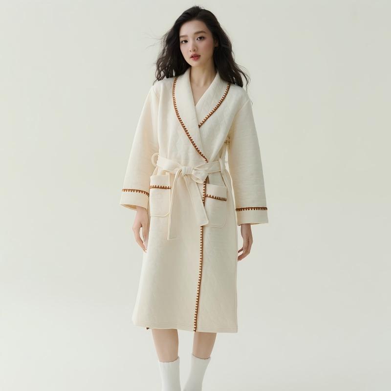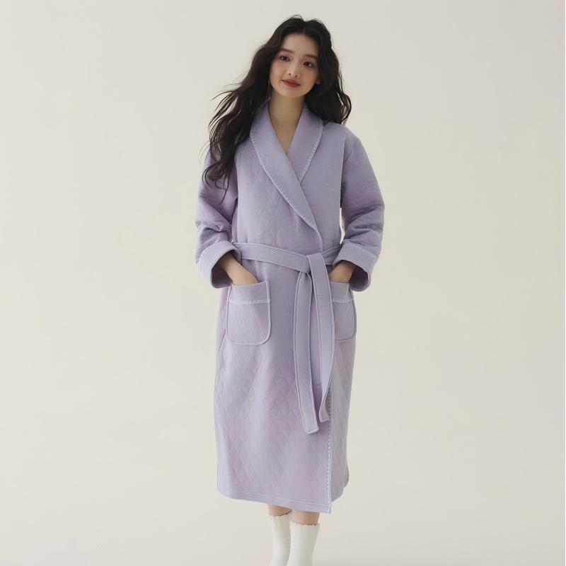 现货睡袍女秋冬季空气棉女士夹棉加厚夹层薄浴袍中长款纯棉睡衣晨