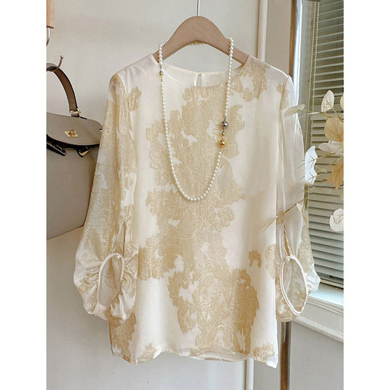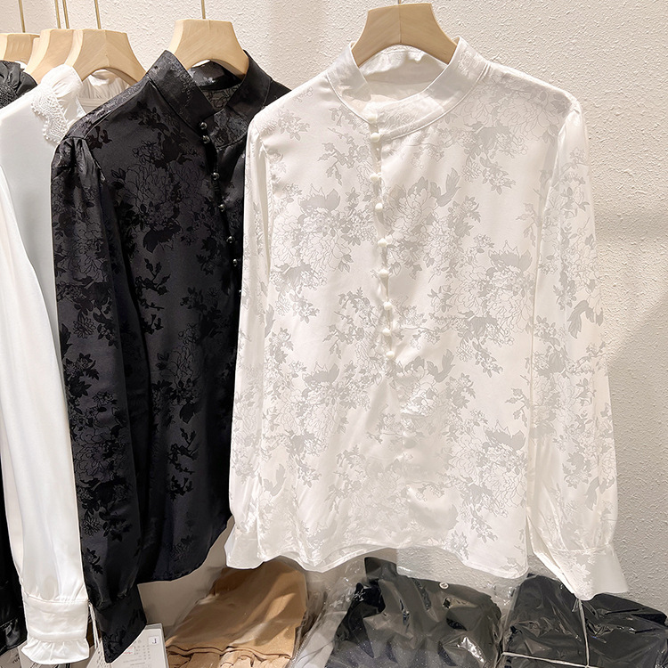 2024年新作 気質のあるレトロな襟付きプリントシングルボタン長袖シャツ レディース 夏用 新中式 薄手トップス
