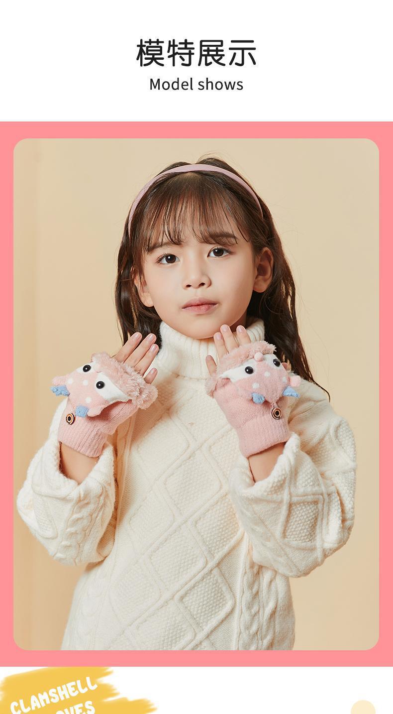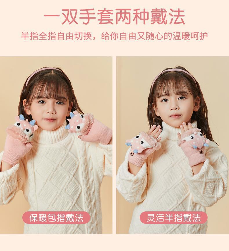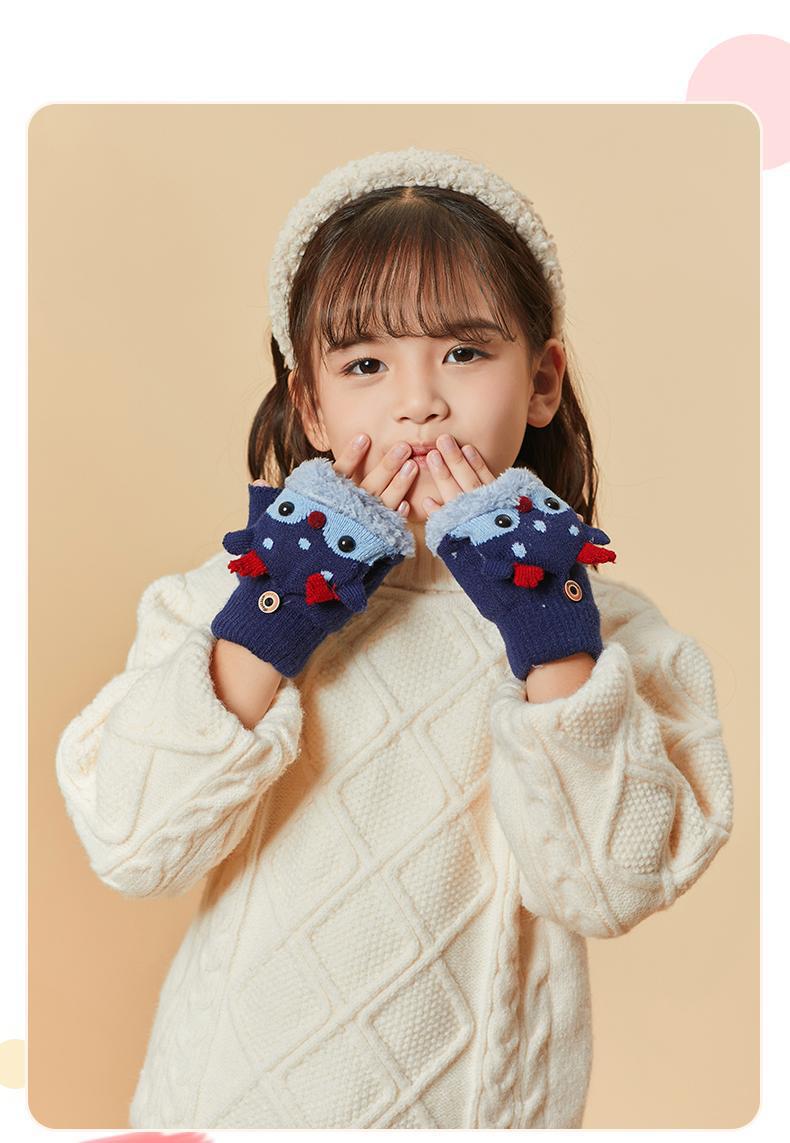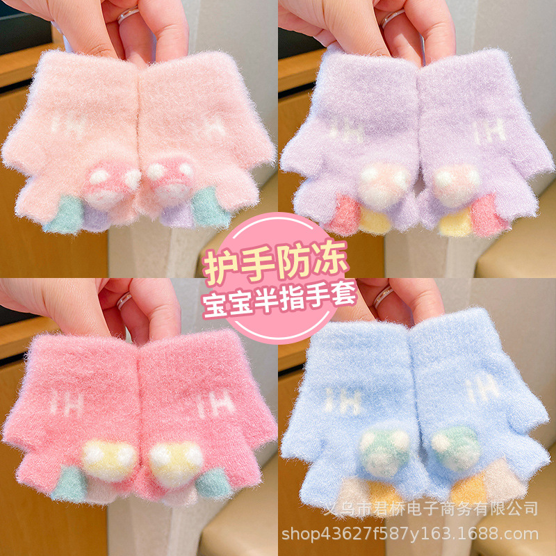 児童手袋冬の男女児童保温半指カバーかわいい赤ちゃん手袋とベルベットの厚い凍結防止指カバー