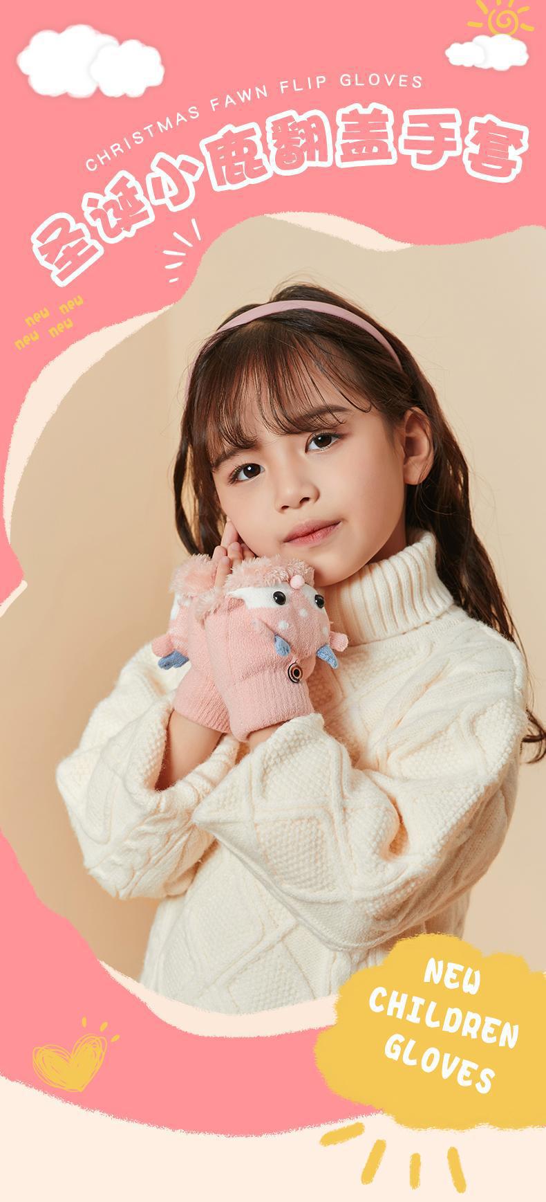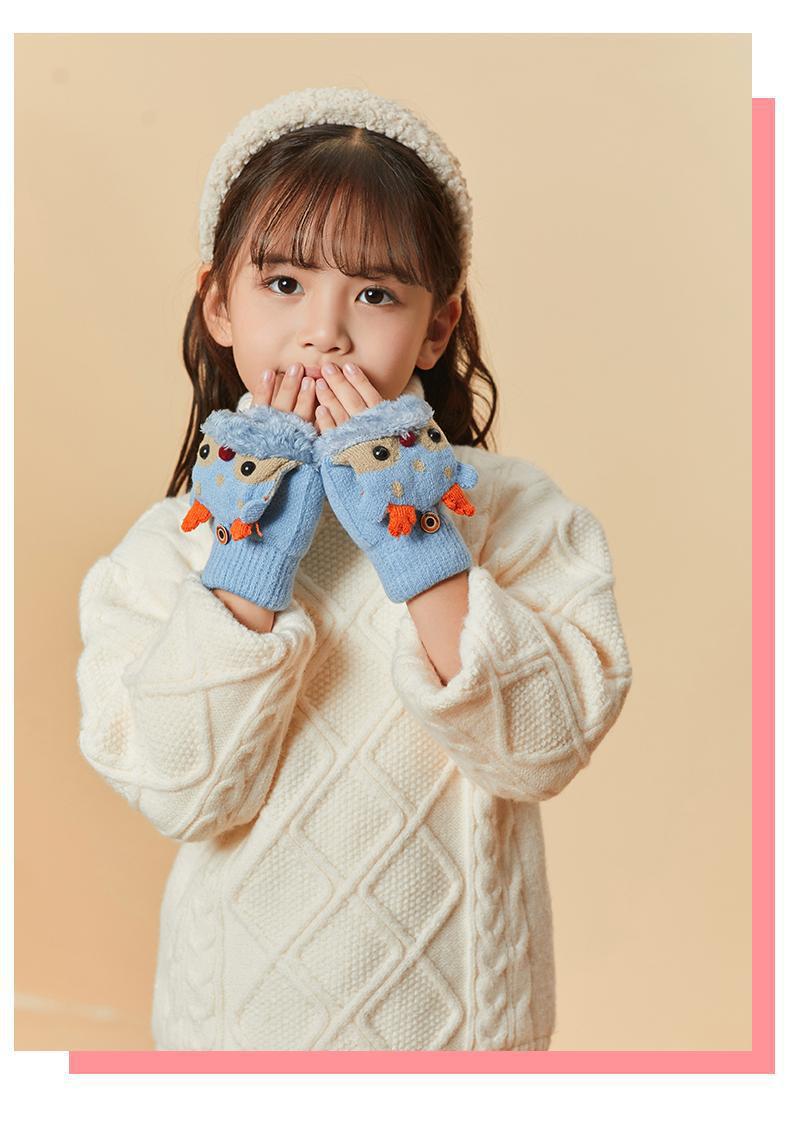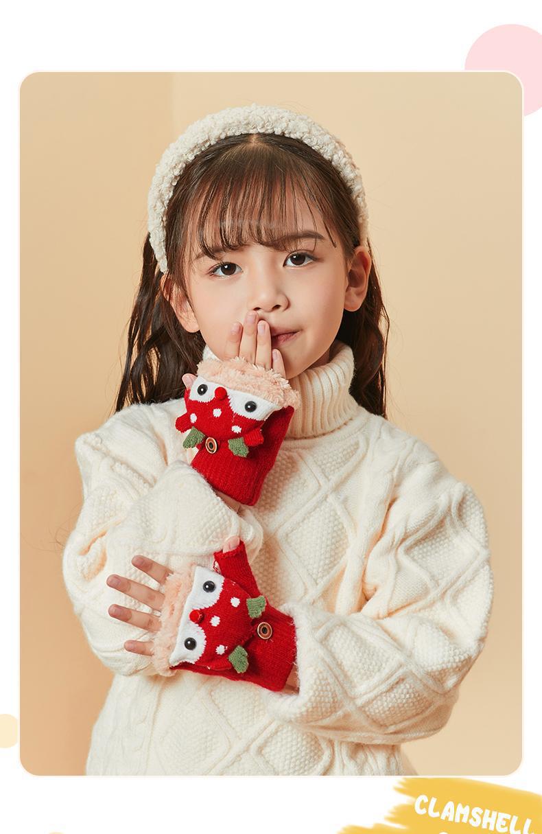 児童手袋冬の男女児童保温半指カバーかわいい赤ちゃん手袋とベルベットの厚い凍結防止指カバー