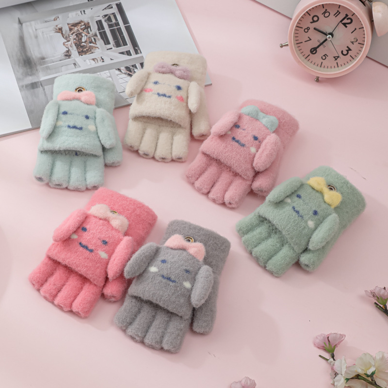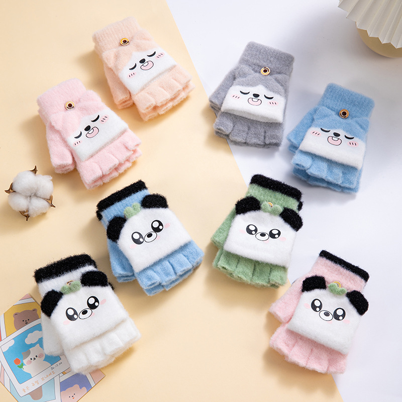 新しい冬の子供の保温のかわいい漫画の5本の指の手袋のニットの学生のぬいぐるみの厚いクラスの半分の指のカバーの手袋