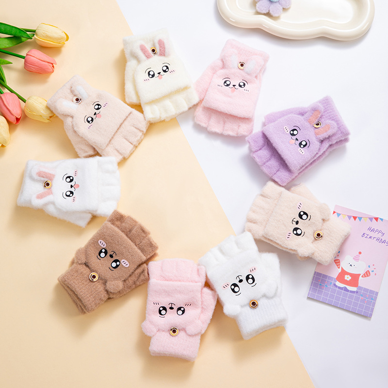 子供用手袋男の子の女の子の漫画は字を書いて厚いベルベットの半分の指を覆って冬の手袋をひっくり返して自転車に乗る子供は保温します。