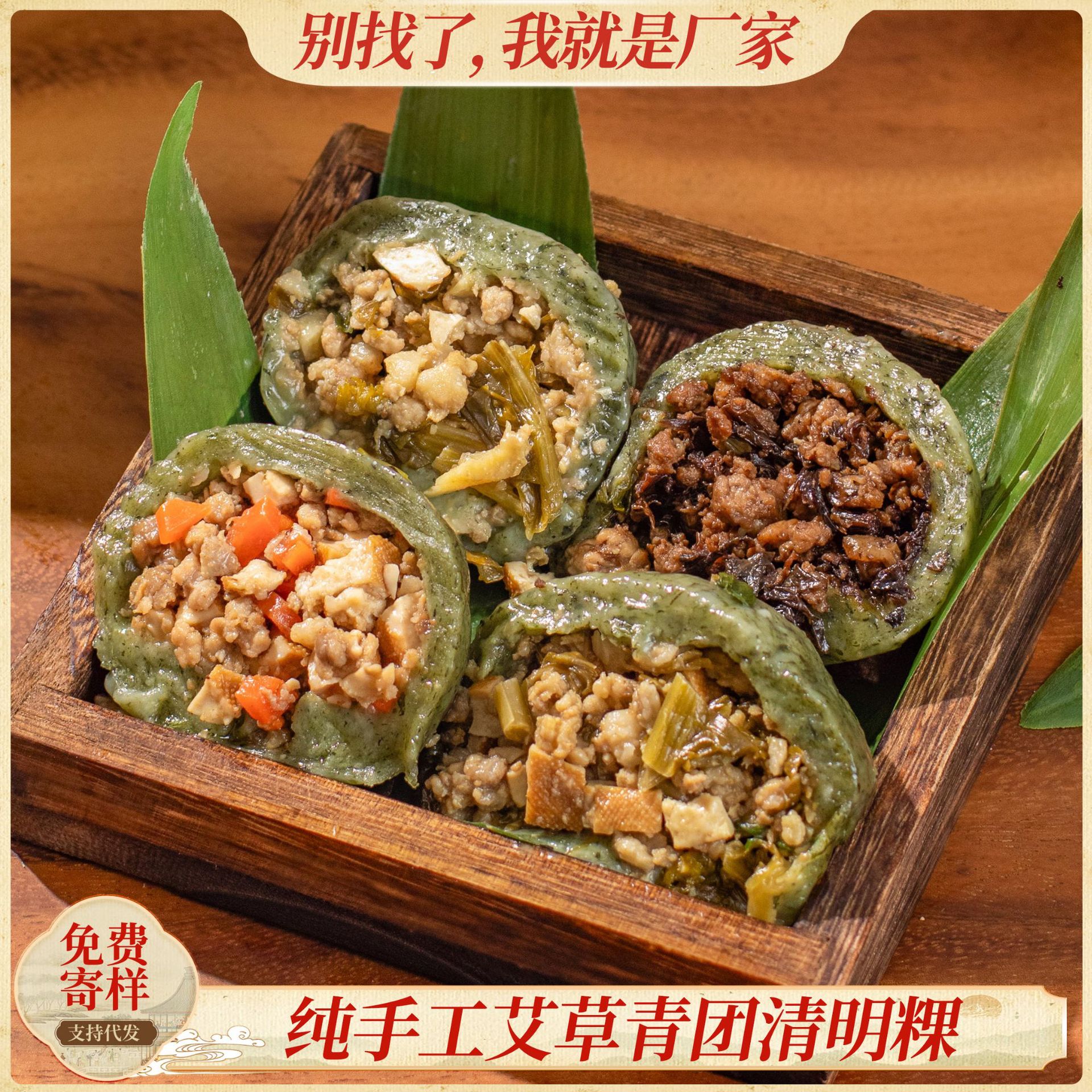 純粋な手作りの鼠曲草艾草卵黄肉松青団新鮮な筍豚肉清明