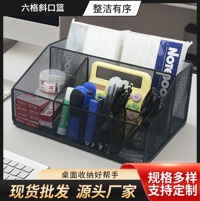 クロスボーダー新しいオフィスデスクトップ収納バスケット斜め口6コンパートメントパーティション収納寝室雑貨化粧品収納ラック