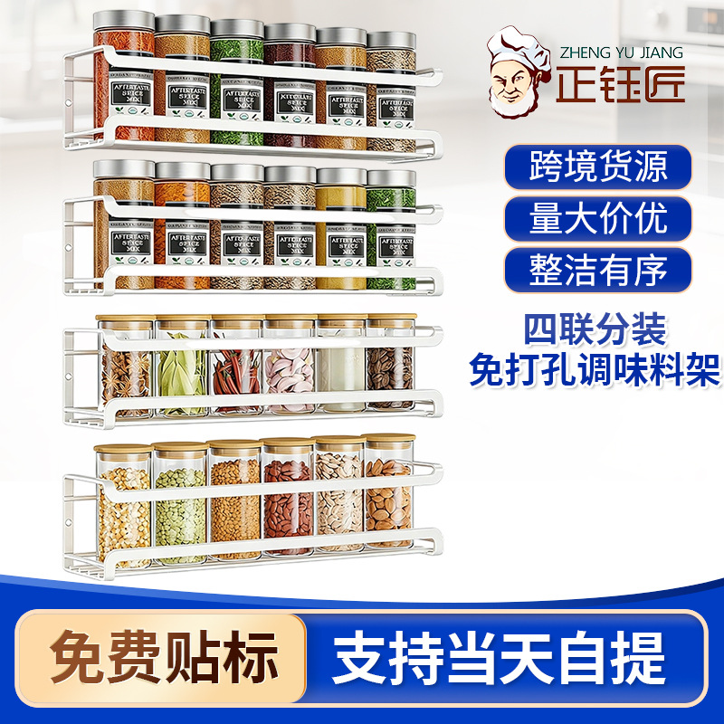 国境を越えた多目的錬鉄製キッチンスパイスラック多層スパイスラックパンチフリー壁掛けスパイスボトル収納ラック