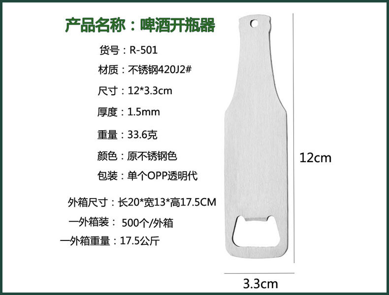 现货批发金属啤酒起子浸胶包胶广告瓶起子不锈钢直板啤酒开瓶器