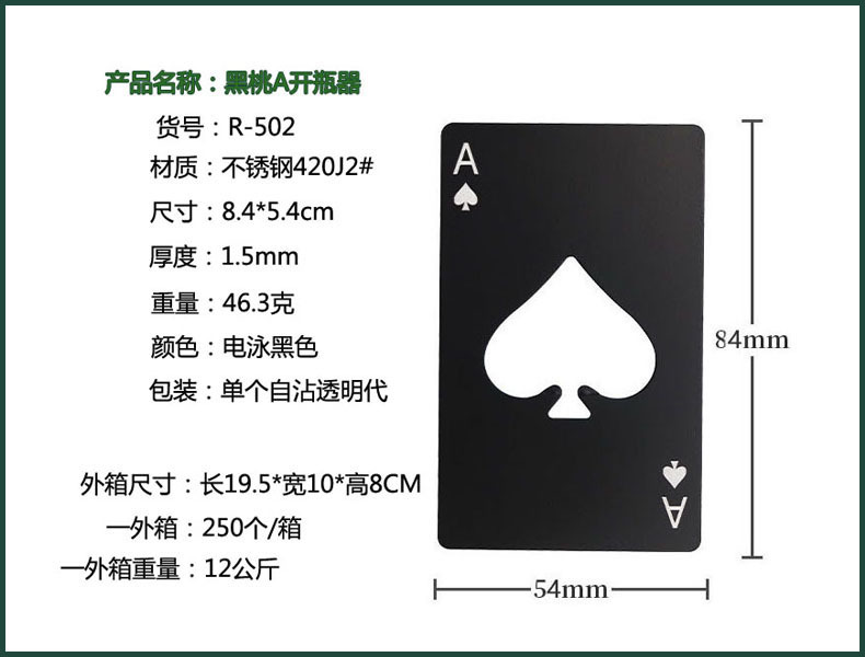ビールドライバースペードaクレジットカード式ボトルオープナークリエイティブトランプ型ステンレスホームツールボトルオープナー