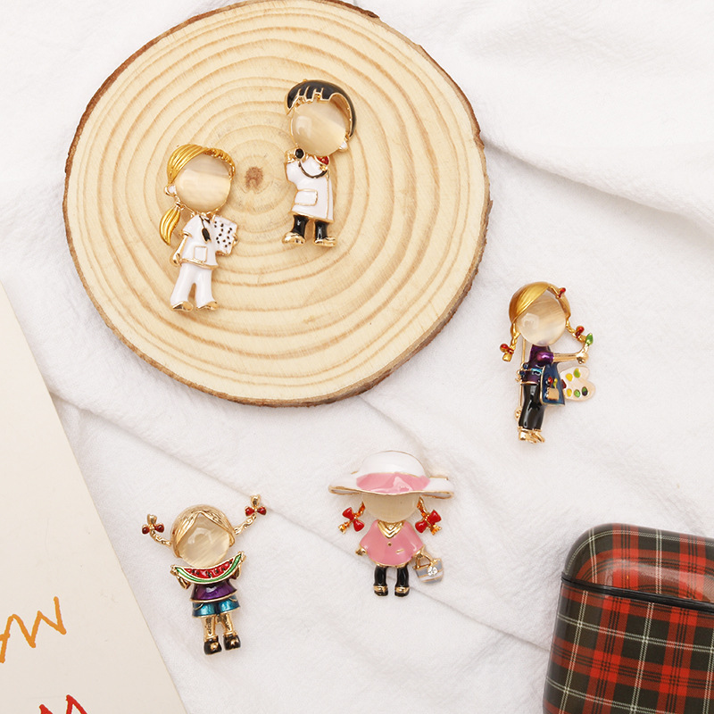 韓国版アニメかわいい女の子ブローチ医師看護師無顔人造形ブローチコートかばんアクセサリー胸花