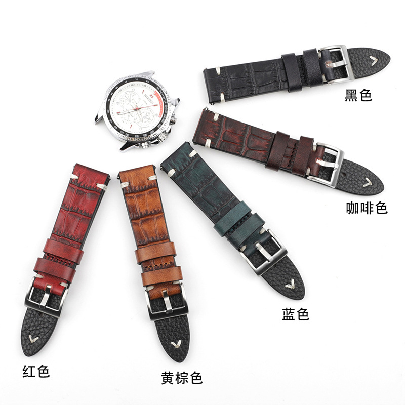 植鞣皮头层牛皮优质油蜡真皮手表带适用于品牌时间手表智能手表牛
