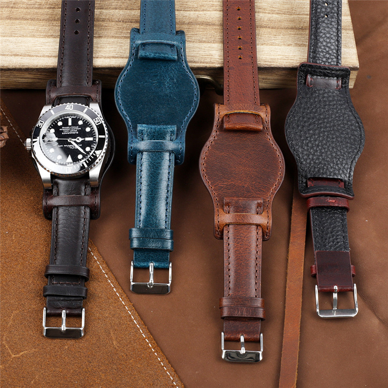 レトロ真皮オイルワックスのトップ牛革時計チェーン18/20/22/24mm男性dw真皮腕時計バンド卸売り